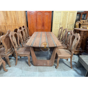 Bàn Ăn Gỗ Gỗ Đỏ Chân Vát 8 ghế nan tựa cong hiện đại