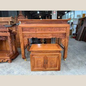 Sập Thờ Gia Tiên Gỗ Gõ Đỏ Kèm Bàn Cúng Cơm Nhỏ – ATG018