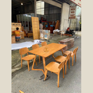 1 bàn ăn gỗ cao su, 6 ghế mặt gỗ cao su