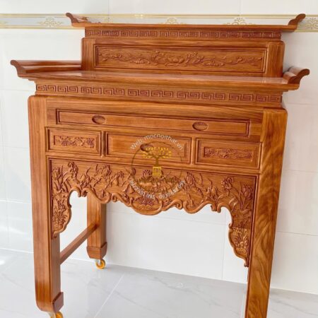 Bàn Thờ Gỗ Gõ Đỏ Nhị Cấp Chạm Hoa Sen Hàng Đặt