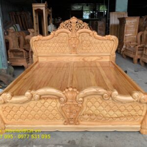 Giường Ngủ Gỗ Gõ Kiểu Sò Dày Đuôi Chạm