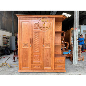 Tủ Quần Áo Gỗ Sồi Kèm Ngăn Kệ Ngoài