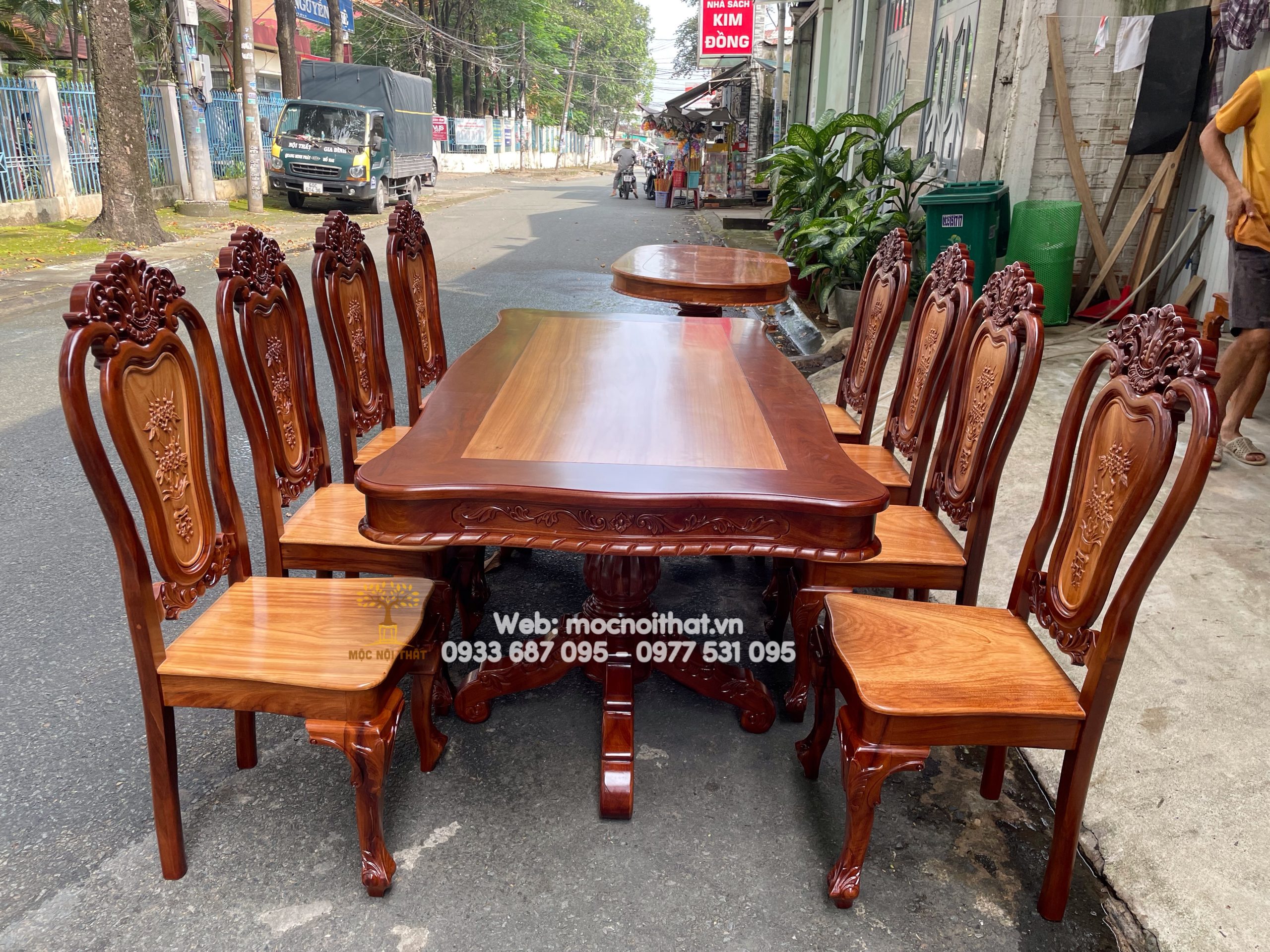 Bàn Ăn Gỗ Căm Xe Mặt Bánh Tây 8 Ghế