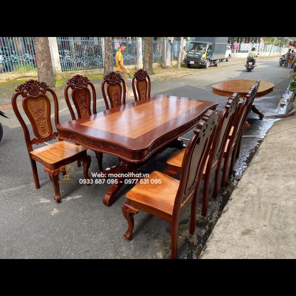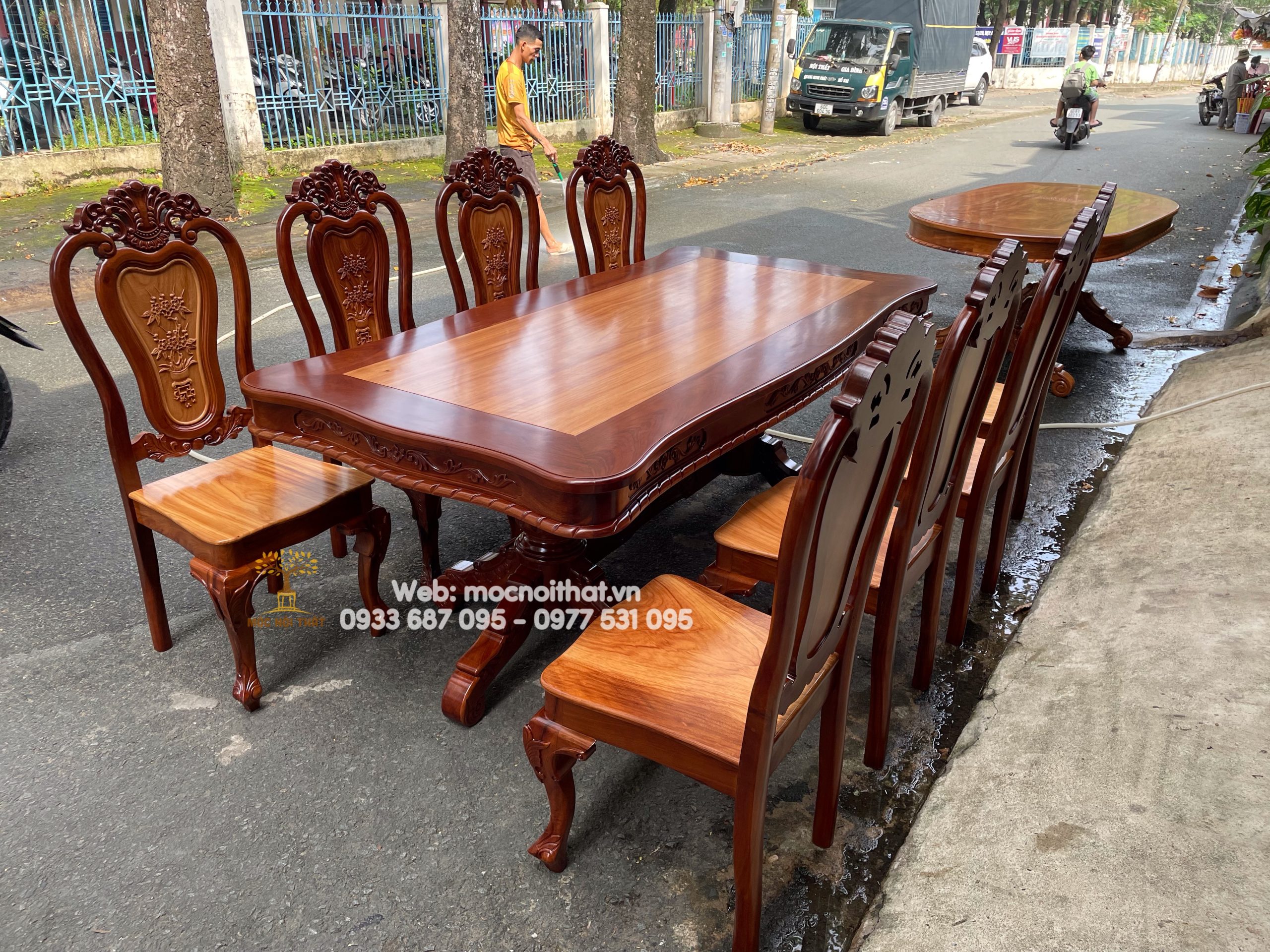 • Bàn Ăn Gỗ Căm Xe Oval 6 ghế