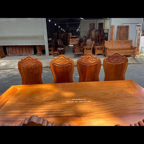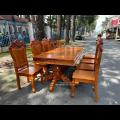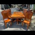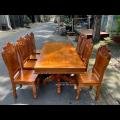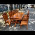 Bàn Ăn Gõ Đỏ Kèm 8 Ghế Tựa Lưng Liền Dày