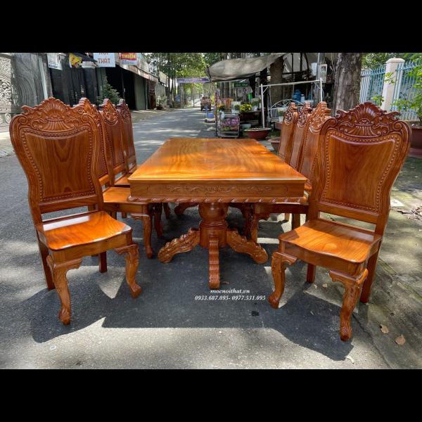 • Bàn Ăn Gỗ Cao Su 6 Ghế Mặt Gỗ – BCS005