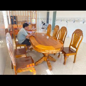 • Bàn Ăn Gỗ Căm Xe Oval 8 ghế