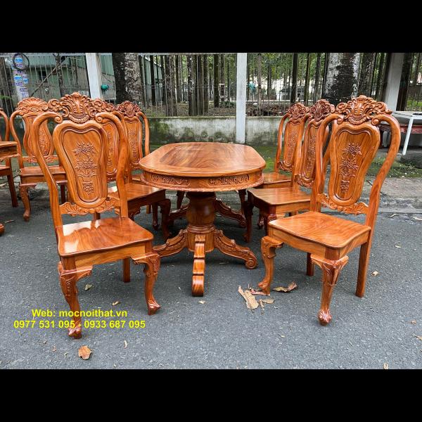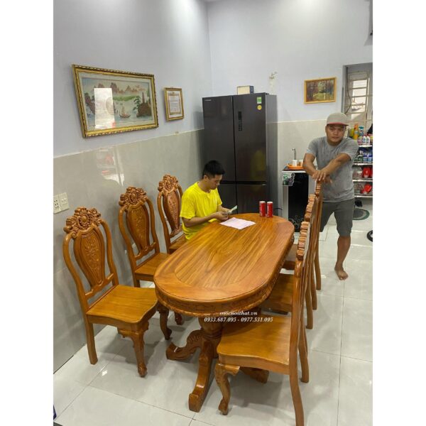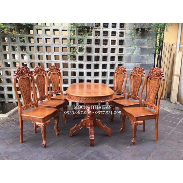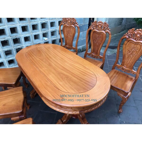 • Bàn Ăn Gỗ Tràm Oval 6 ghế – BGT-001