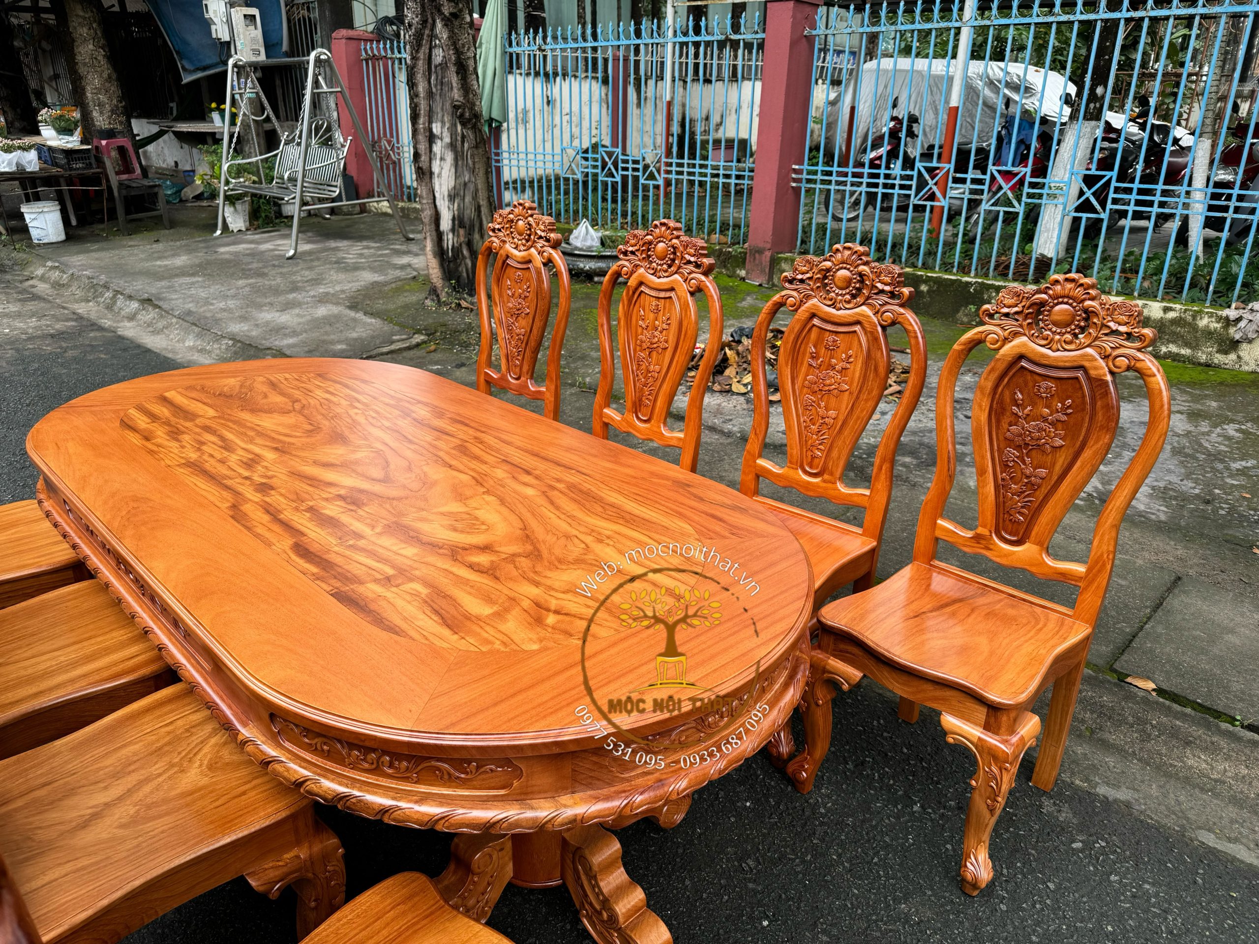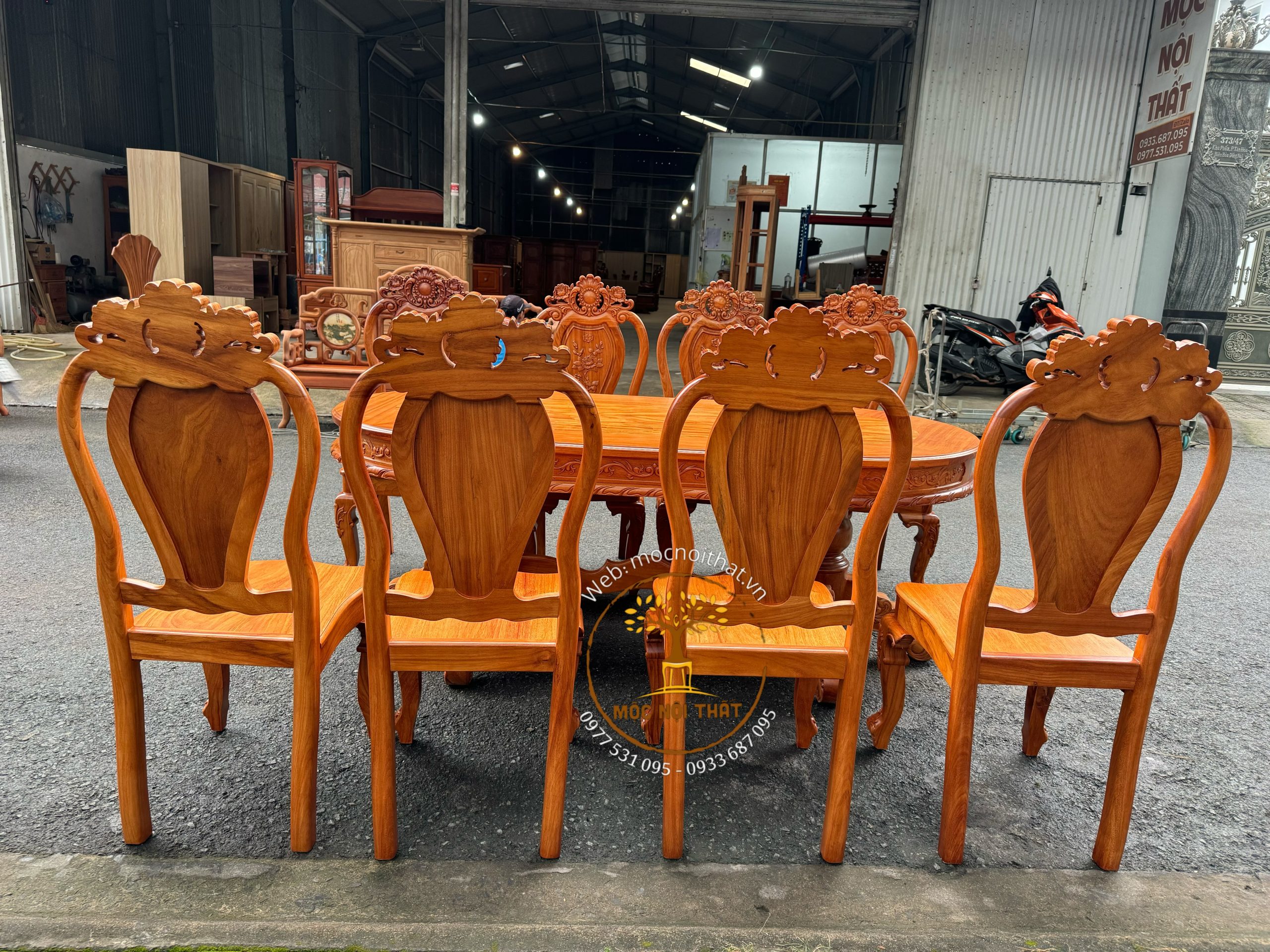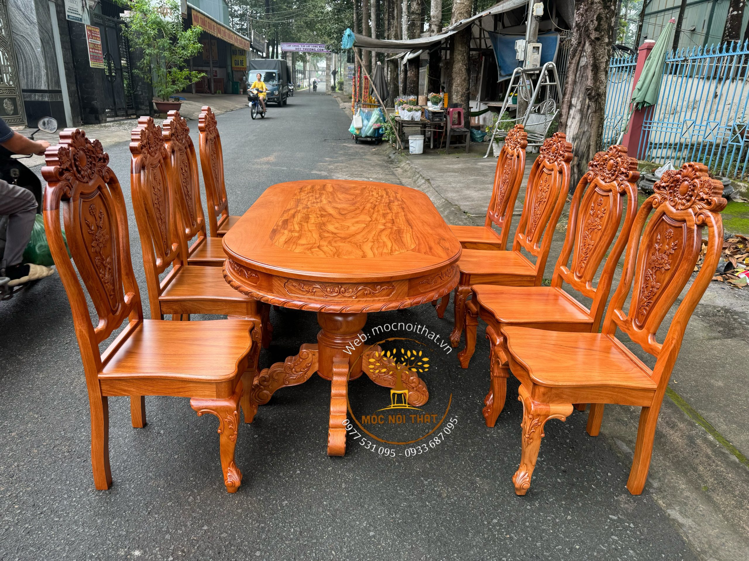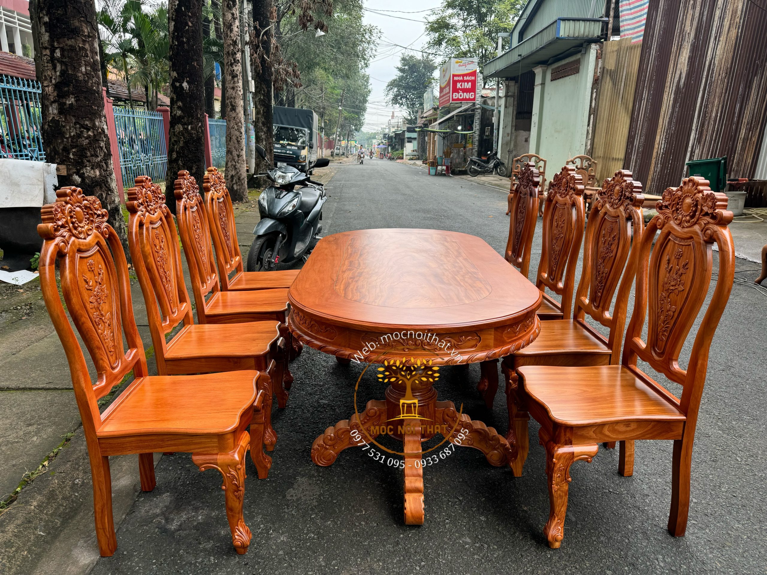 Bàn Ăn Gỗ Gõ Đỏ Oval 8 Ghế Mặt 1,8cm