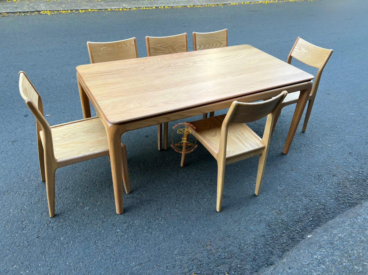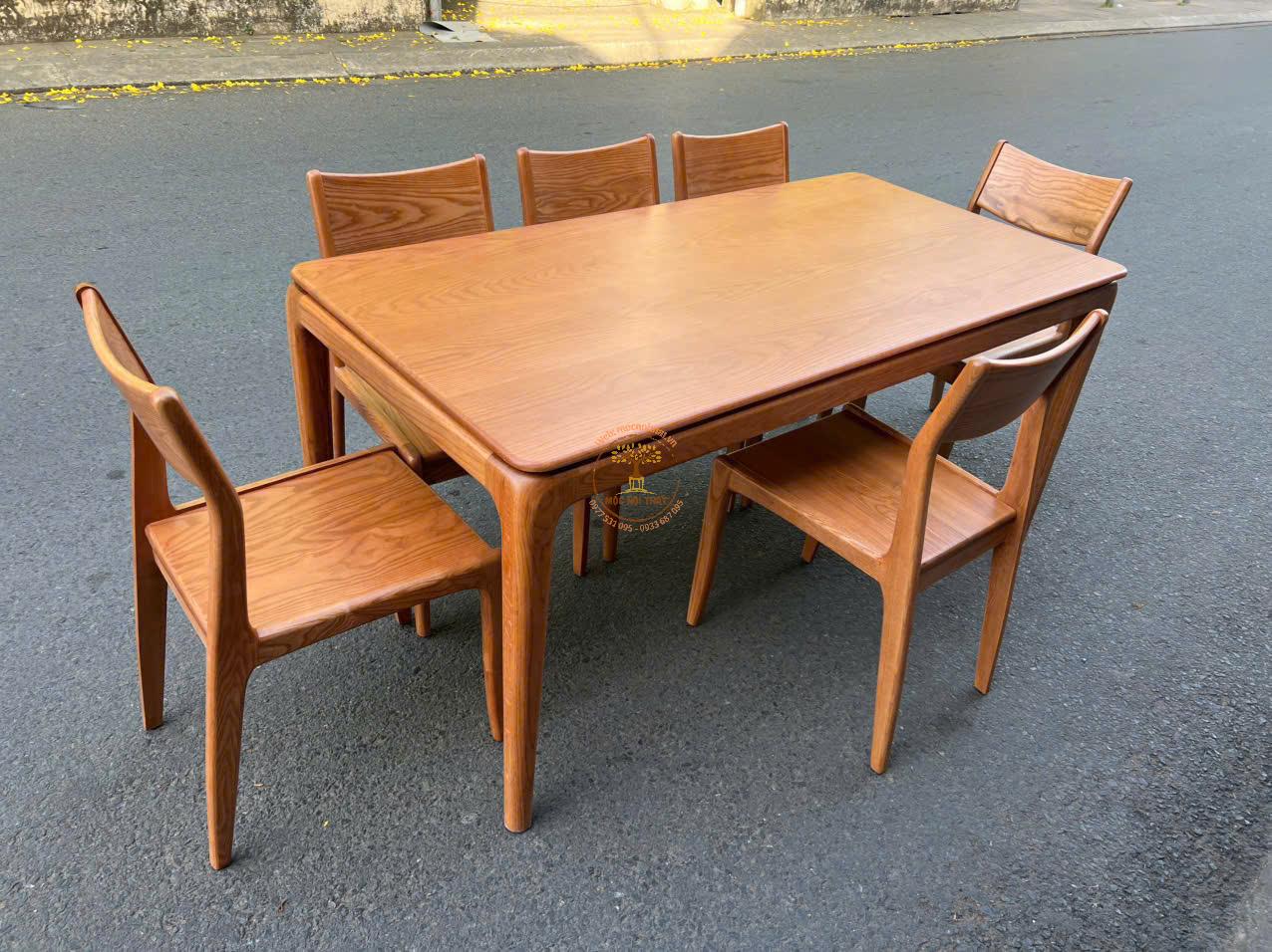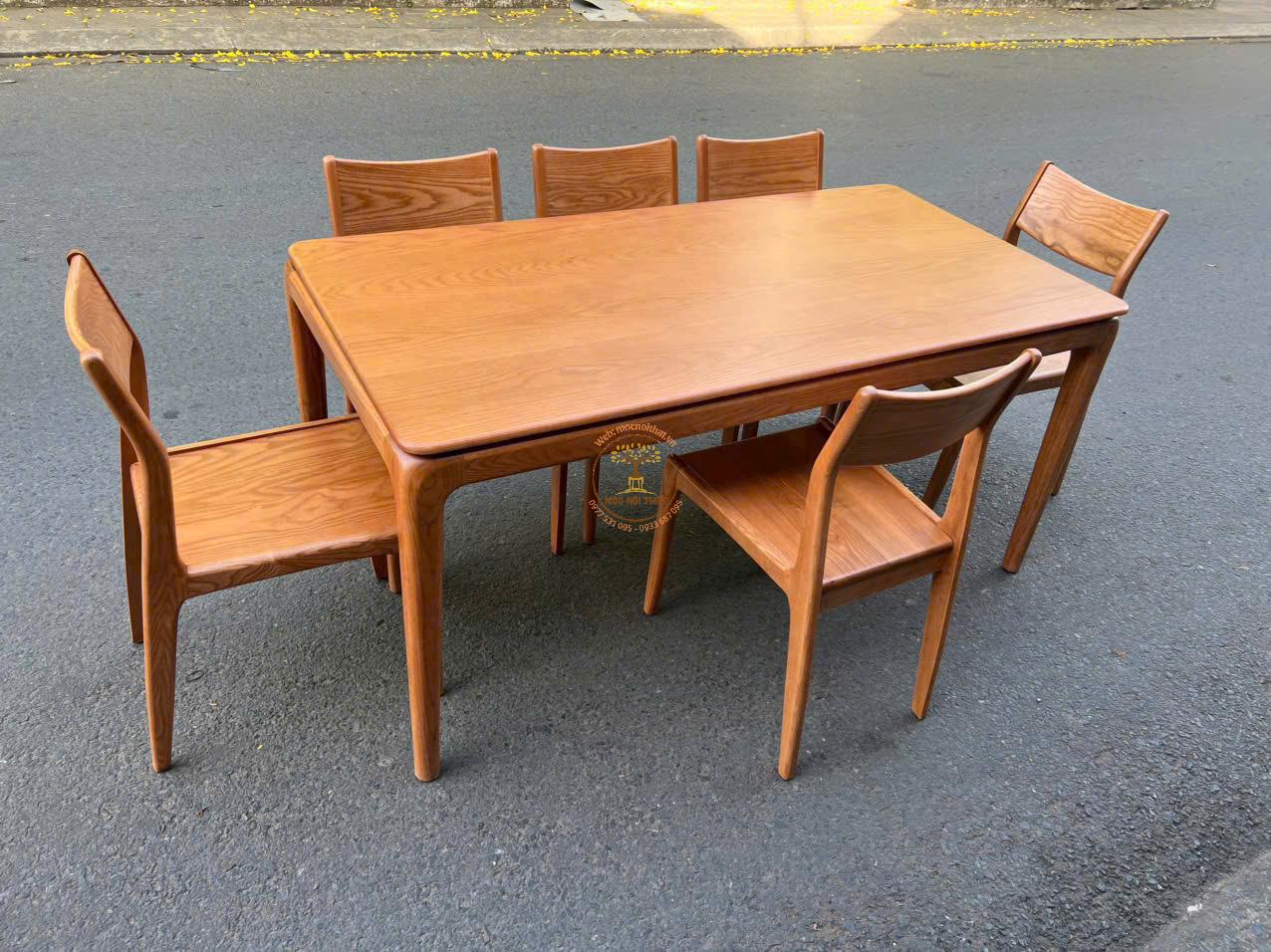 Bàn Ăn Gỗ Sồi 6 Ghế Chân Thẳng