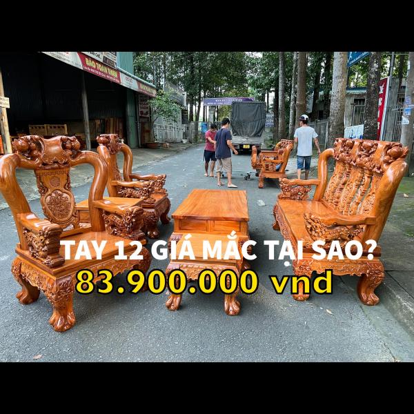 Bàn Ghế Gõ Đỏ Minh Quốc Đào Chim Tay 12 Dáng 14 Tay Nghê Nguyên Khối Mặt Dày 4cm – SLG094