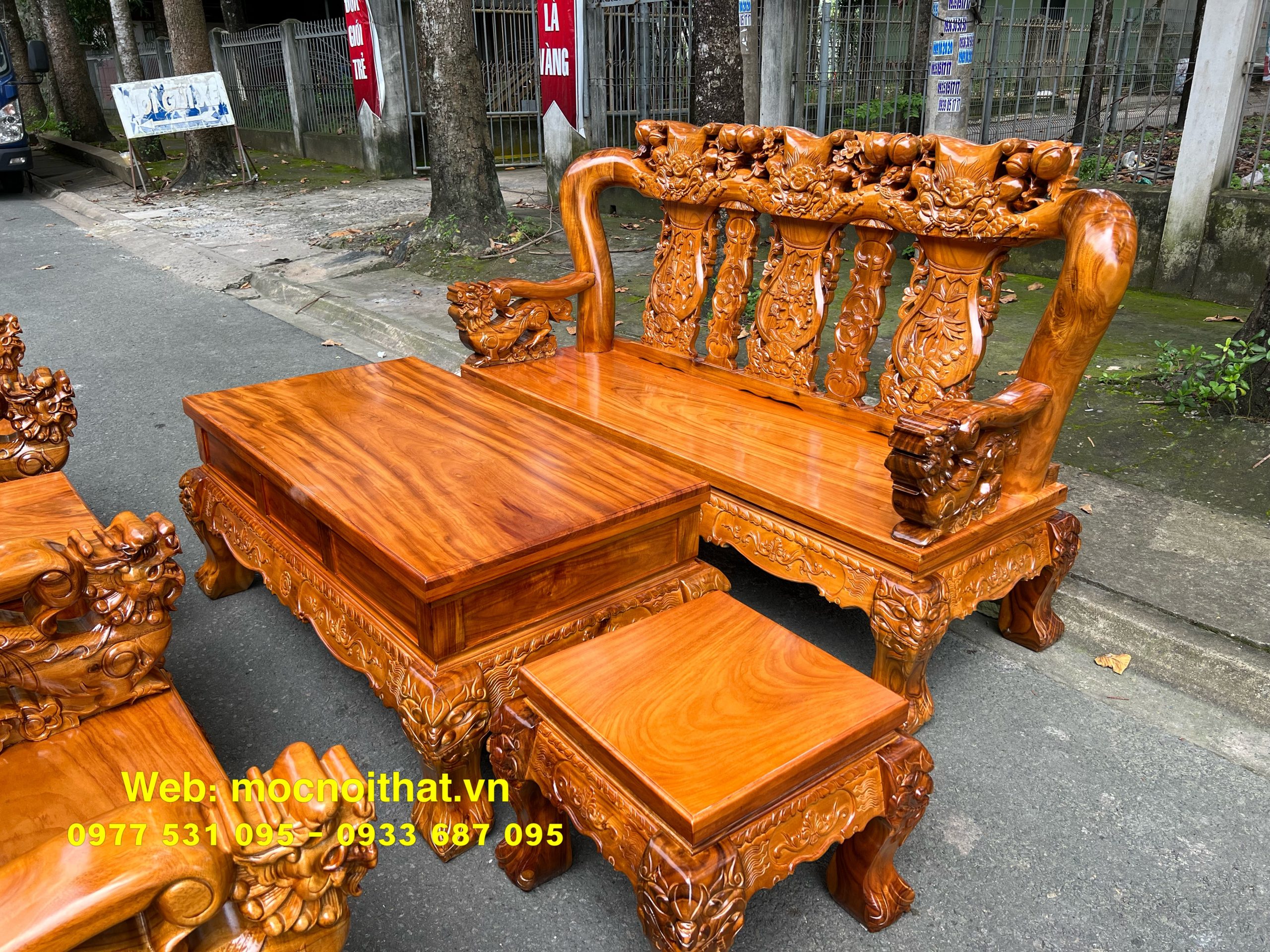 Bàn Ghế Gỗ Tràm Lõi Minh Quốc Đào Tay 14 Tay Nghê Nguyên Khối