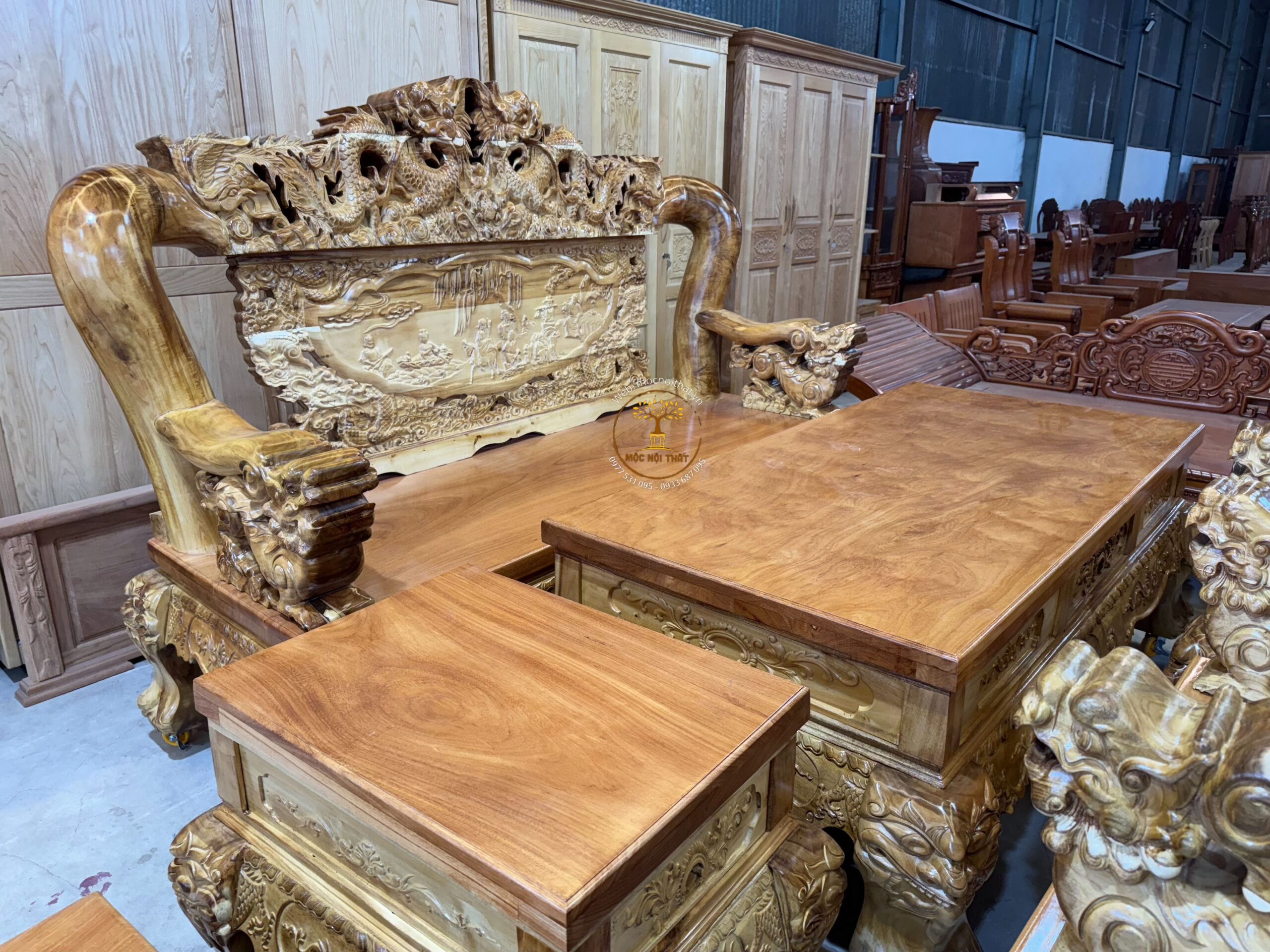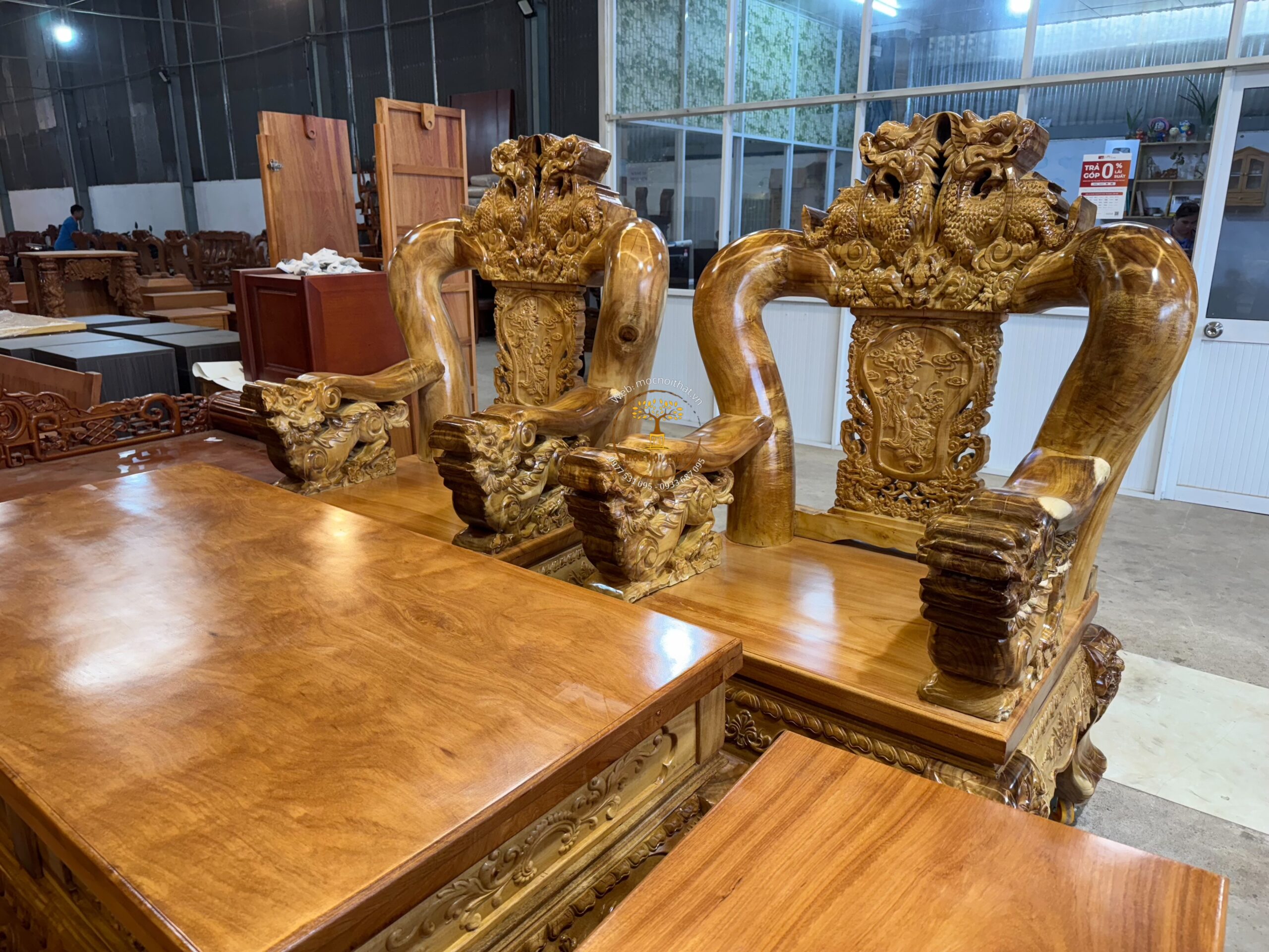 • Bàn Ghế Gỗ Tràm Song Long Tay Rồng 8 – SLT026