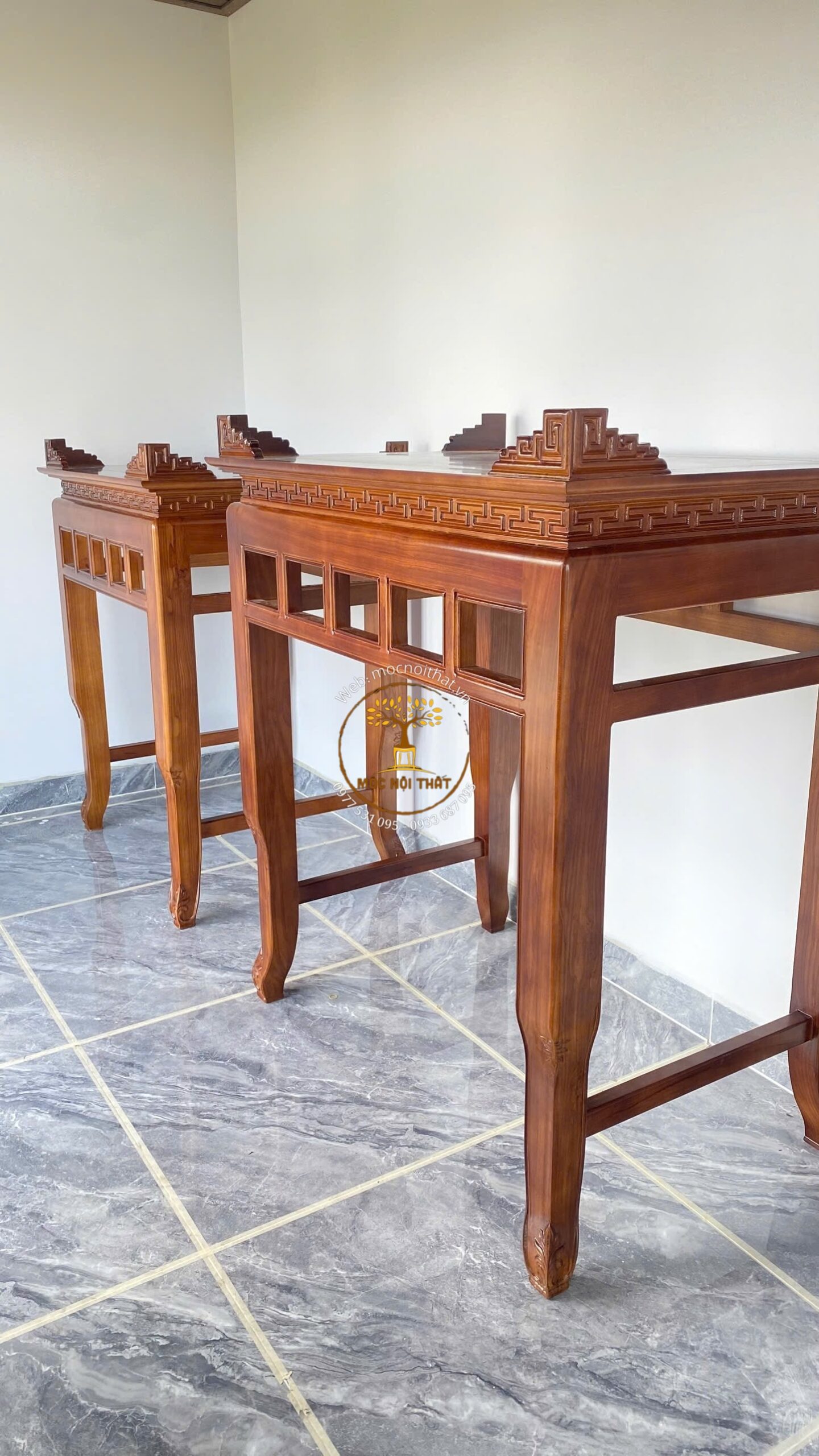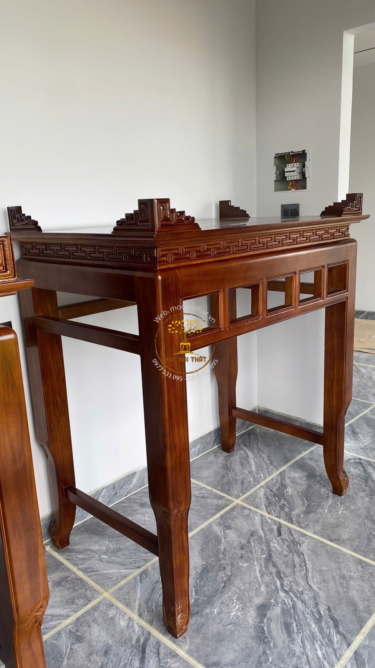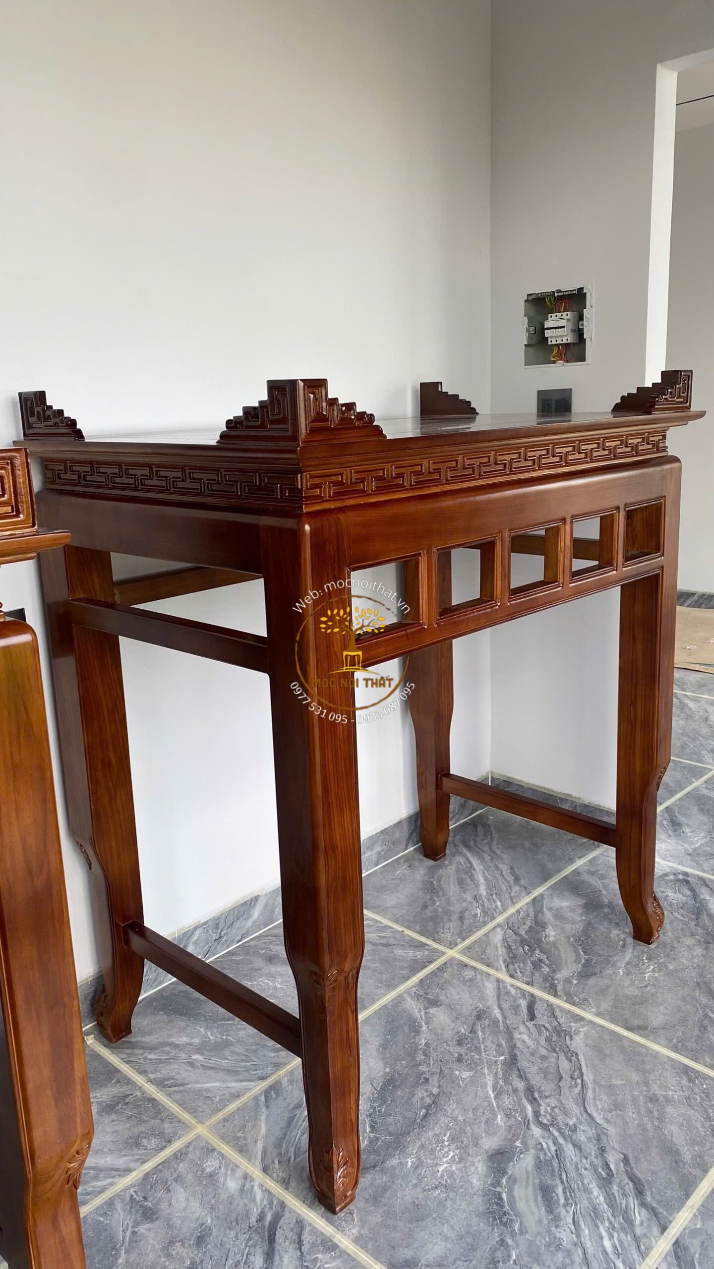 Bàn Thờ Gia Tiên Gõ Đỏ Chân Cong Viền Lủng