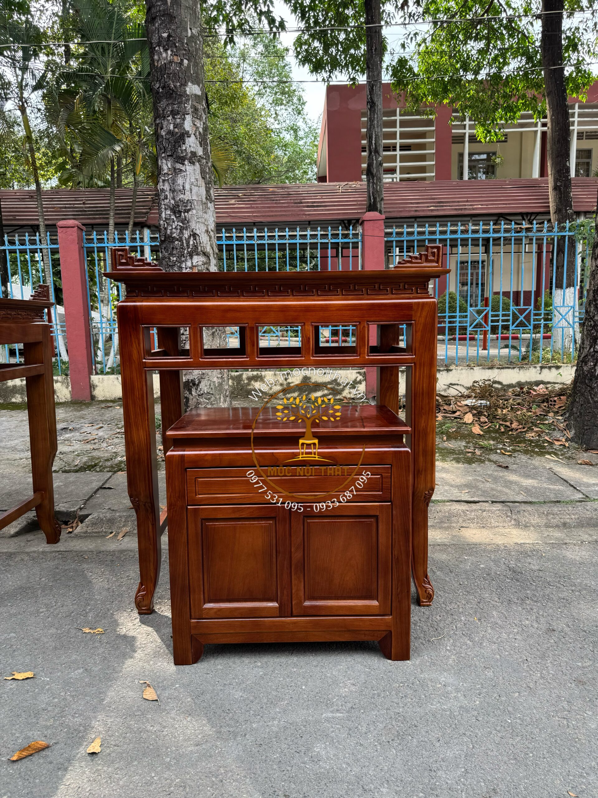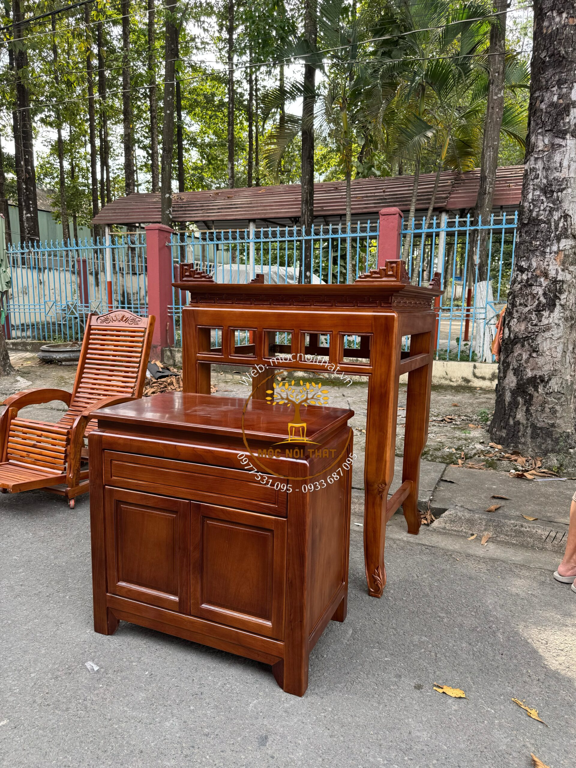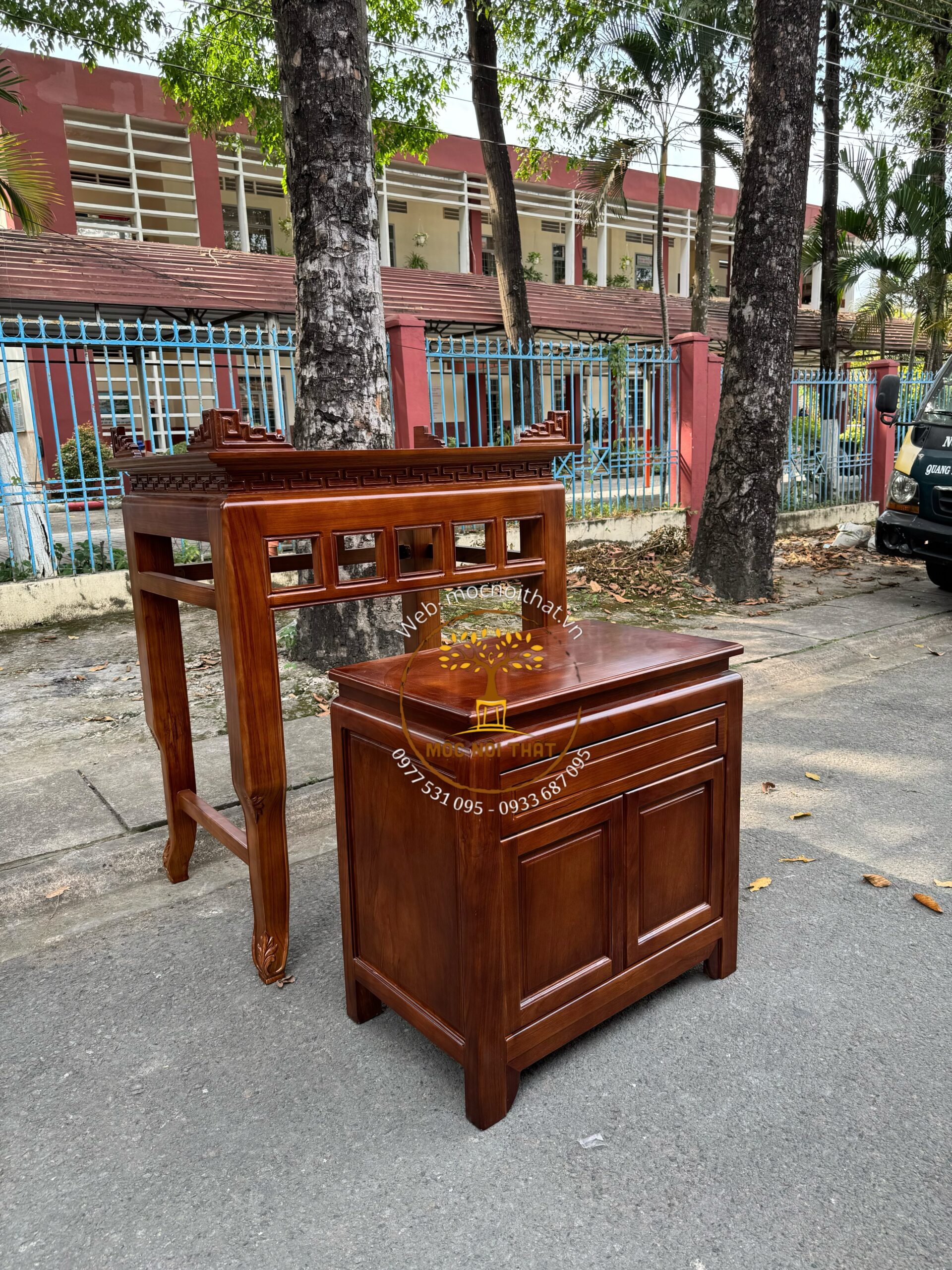 • Sập Thờ Gia Tiên Gỗ Gõ Đỏ Kèm Bàn Cúng Cơm Nhỏ – ATG018