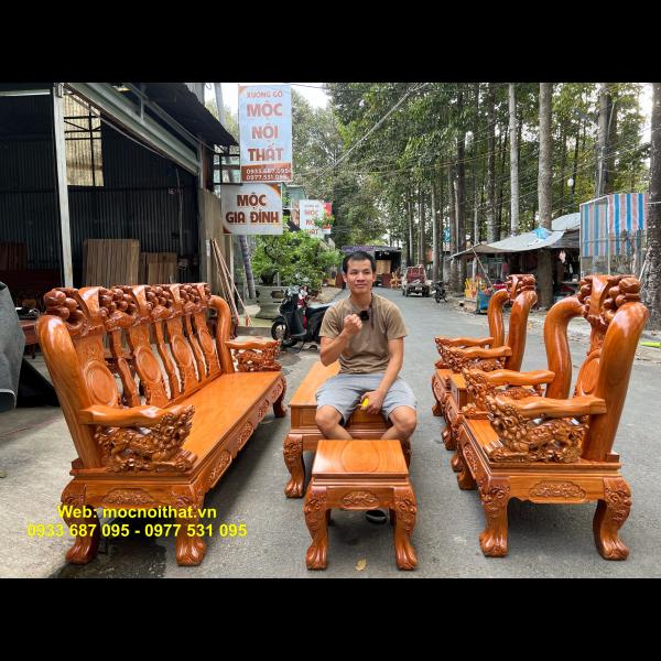 • Bàn Ghế Gỗ Tràm Rồng Cao Phú Quý Tay Lân10 – SLT038
