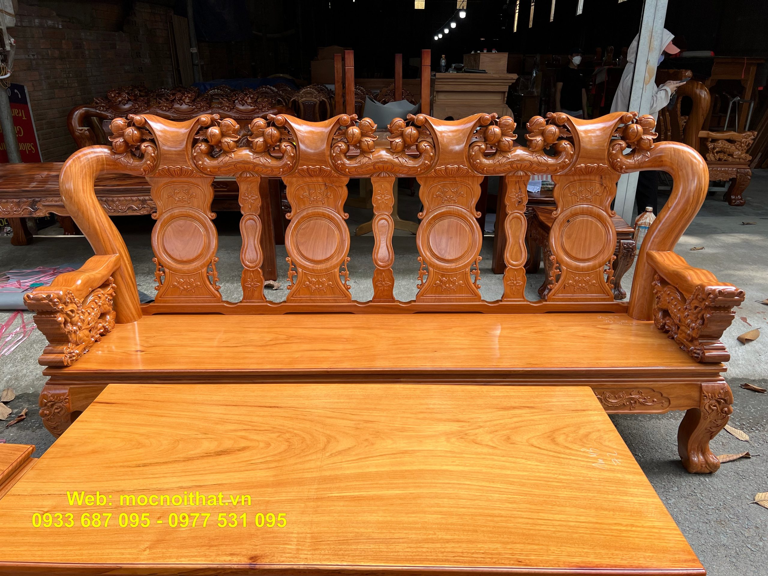 Bộ Bàn Ghế Gõ Đỏ Lục Đào Tay 12 Nghê Nguyên Khối Băng Ghế Dài 4 Tựa – SLG068