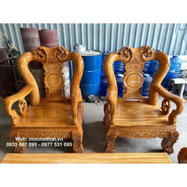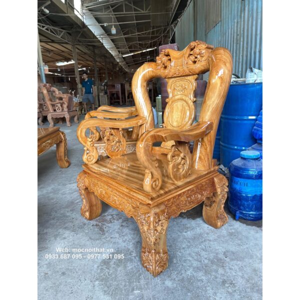 • Bàn Ghế Gỗ Tràm Song Long Tựa Tứ Linh Tay 10 – SLT045