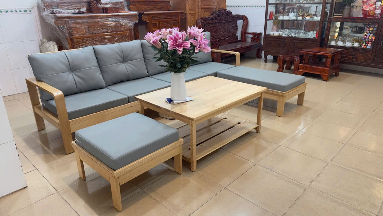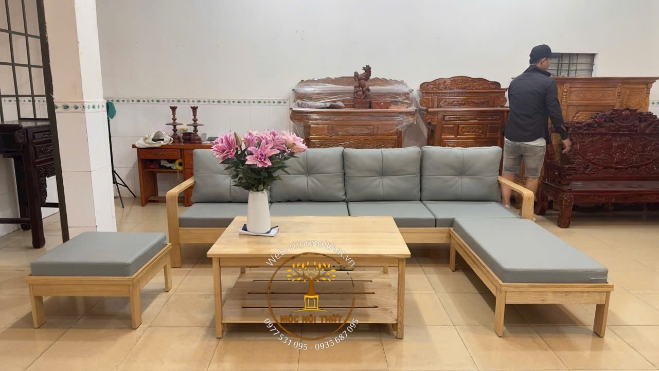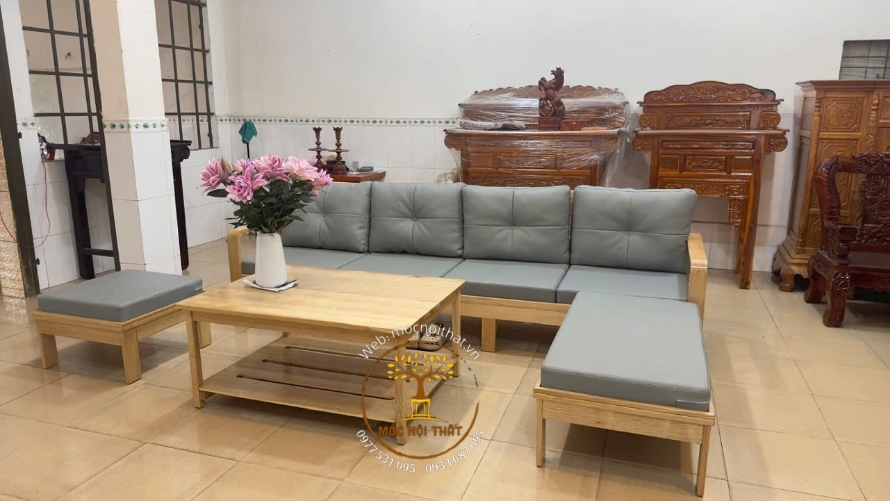 Bộ Sofa Góc Gỗ Sồi Kiểu Nhật Hàng Đặt
