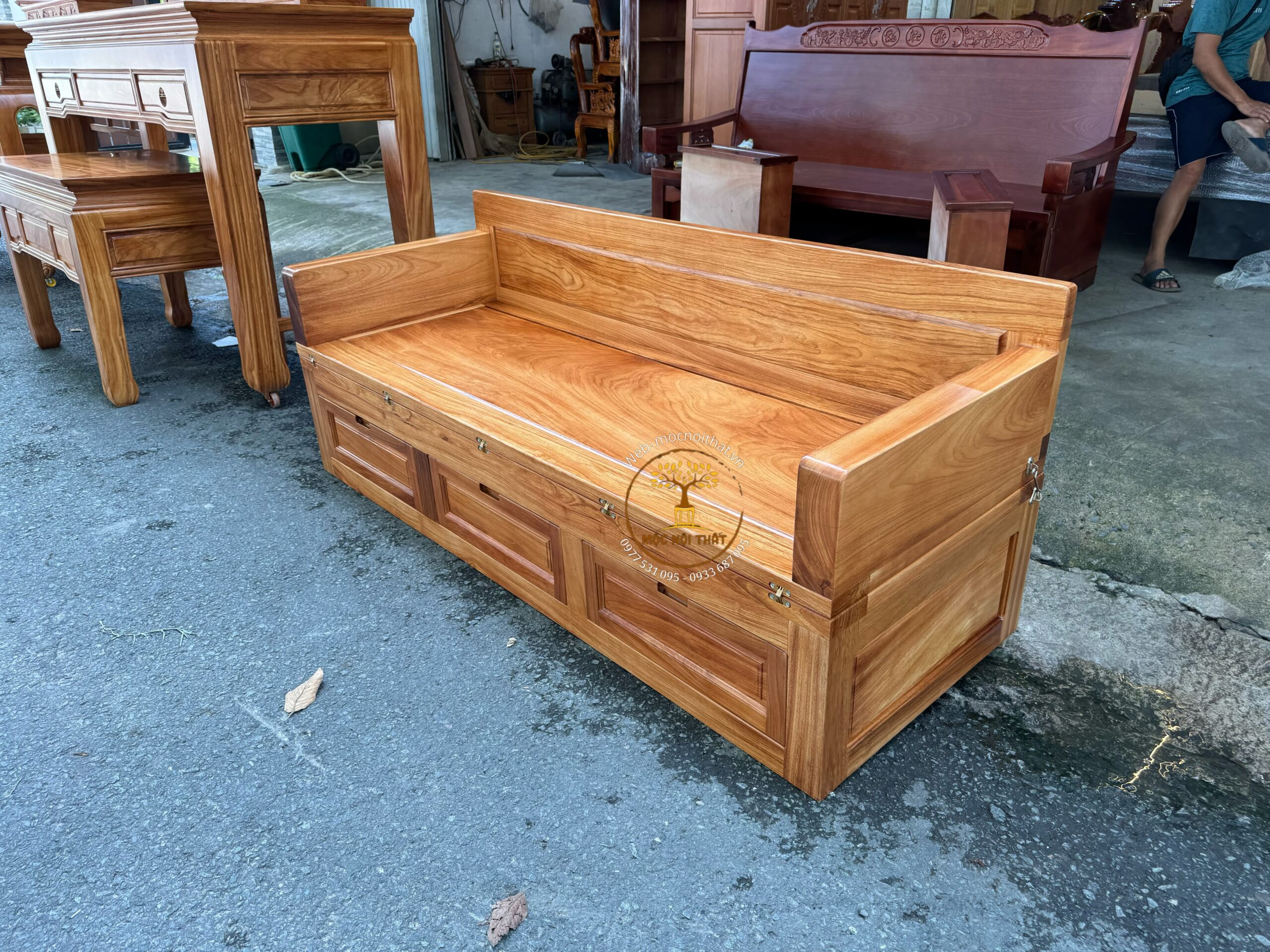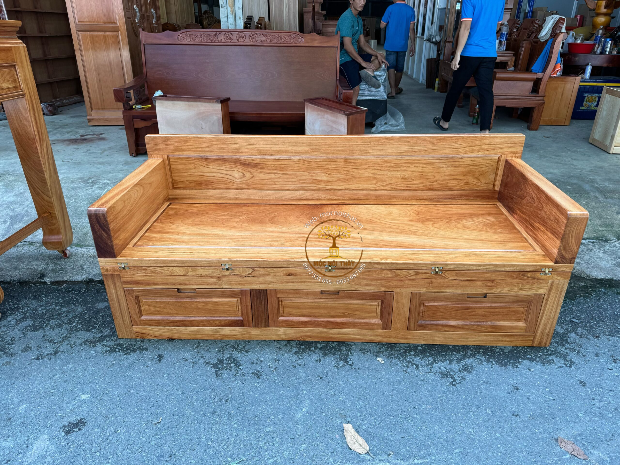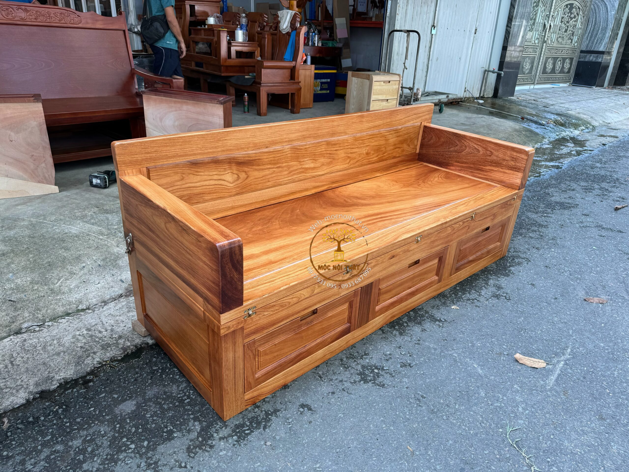 • Phương Kỷ Gõ Đỏ Kiểu 2 Gối Mặt Bao Lam Tựa Trơn Đơn Giản