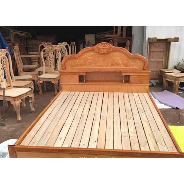 • Giường Ngủ Gỗ Gõ Kiểu Sò Dày Đuôi Chạm