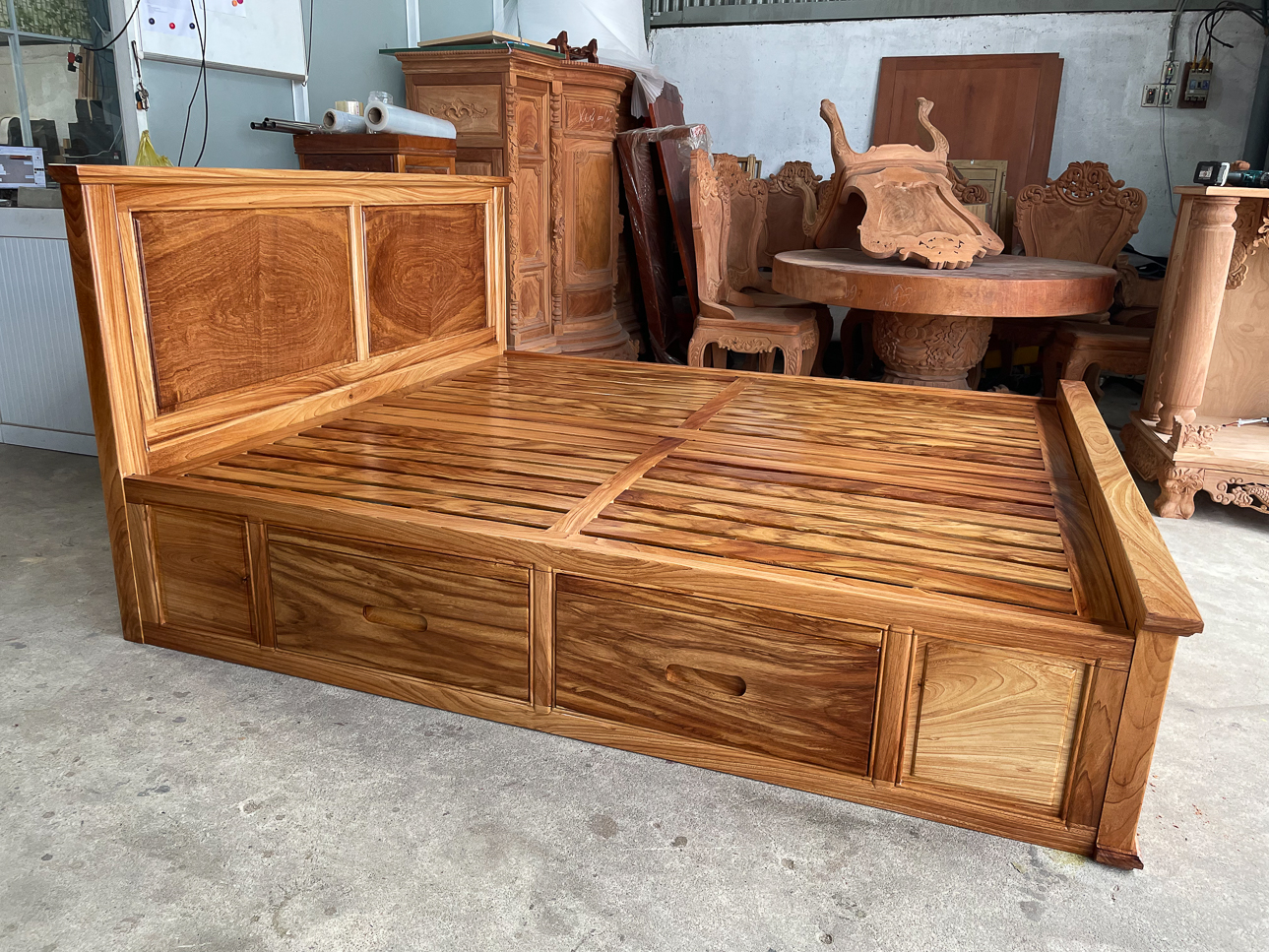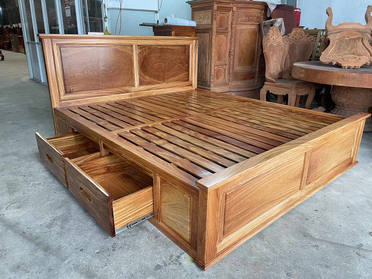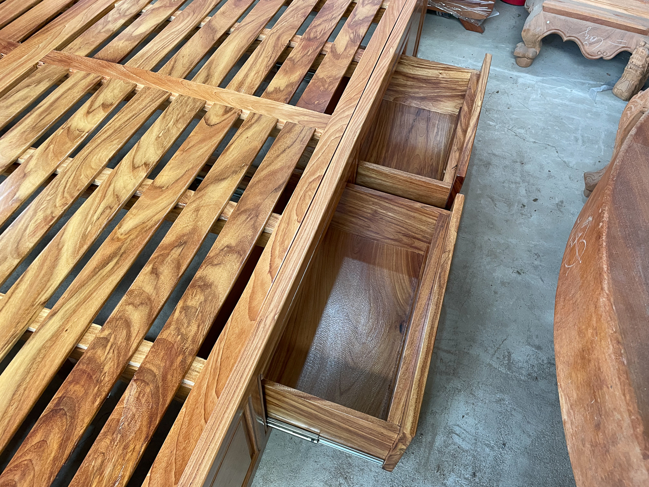 Giường Ngủ Gỗ Gõ Đỏ Kiểu Đơn Giản 4 Hộc Kéo