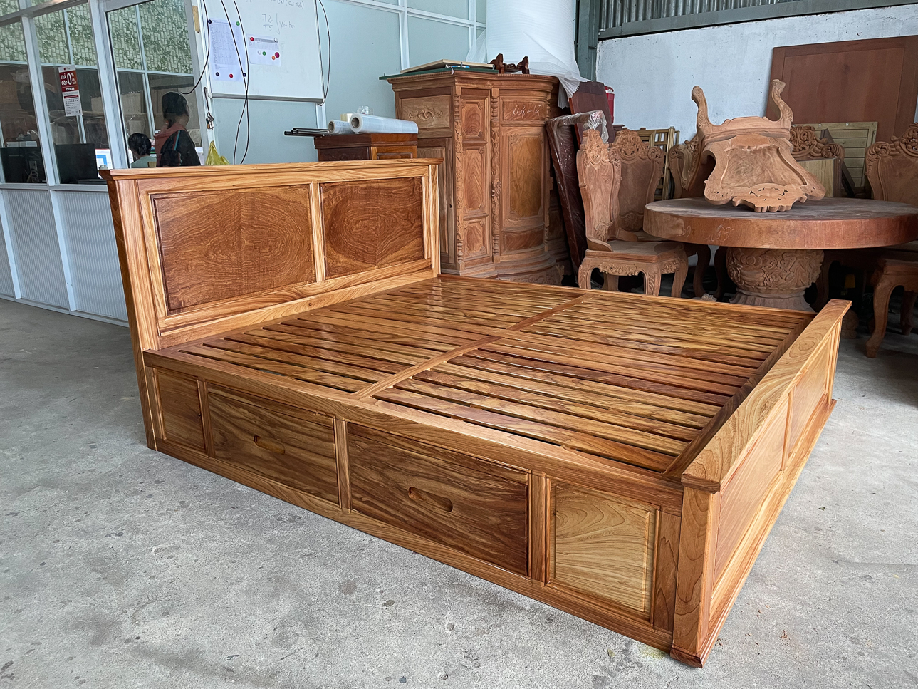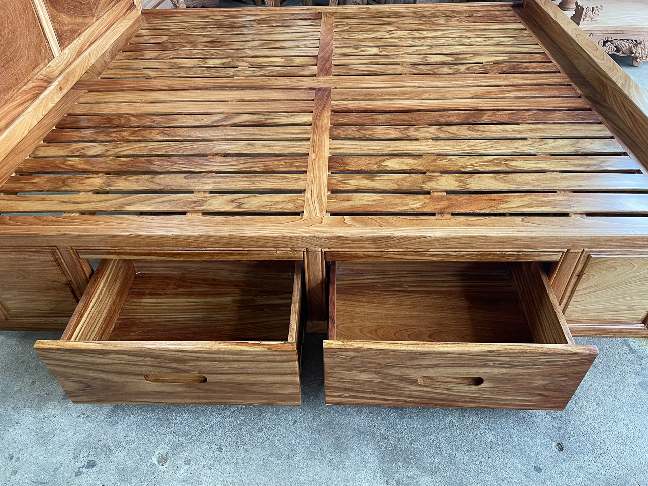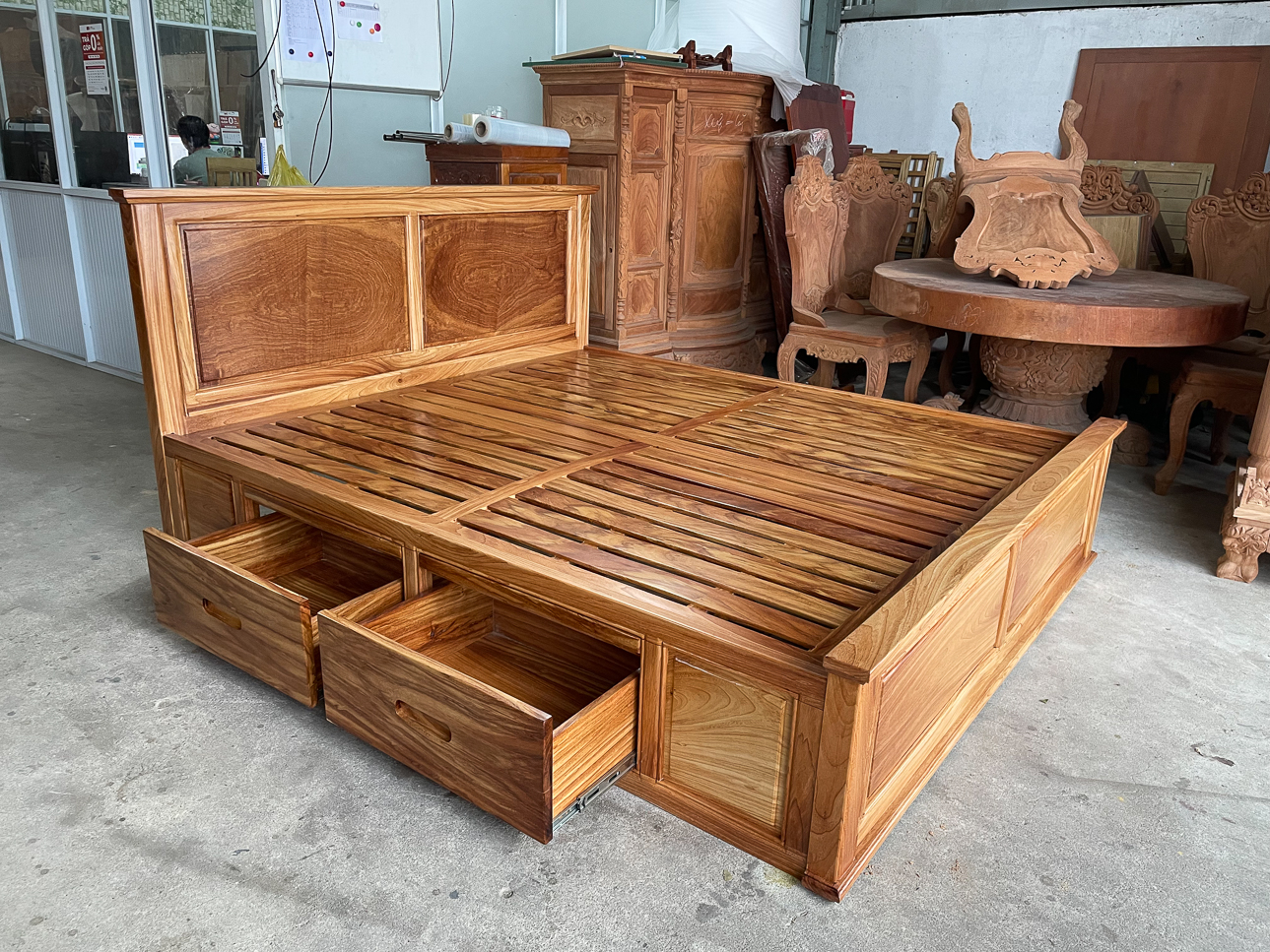 Giường Ngủ Gỗ Gõ Đỏ Kiểu Đơn Giản 4 Hộc Kéo
