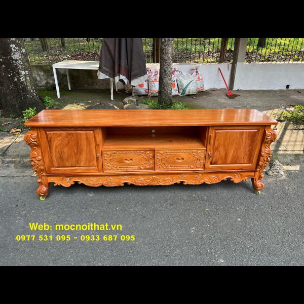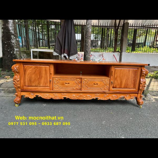 • Mô tả: Kệ tivi được làm bằng thích hợp để được tất cả các loại tivi kích thước khác nhau, được làm bằng gỗ Gõ Đỏ toàn bộ, kiểu dáng Luis sang trọng và quý phái.