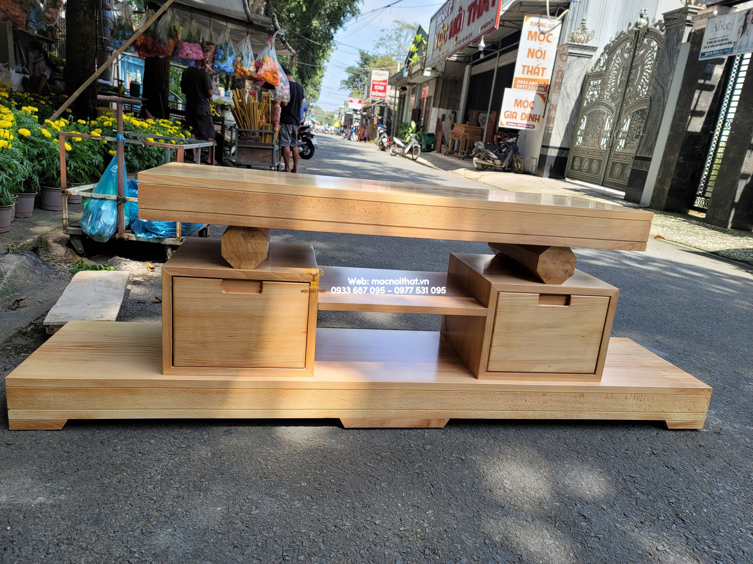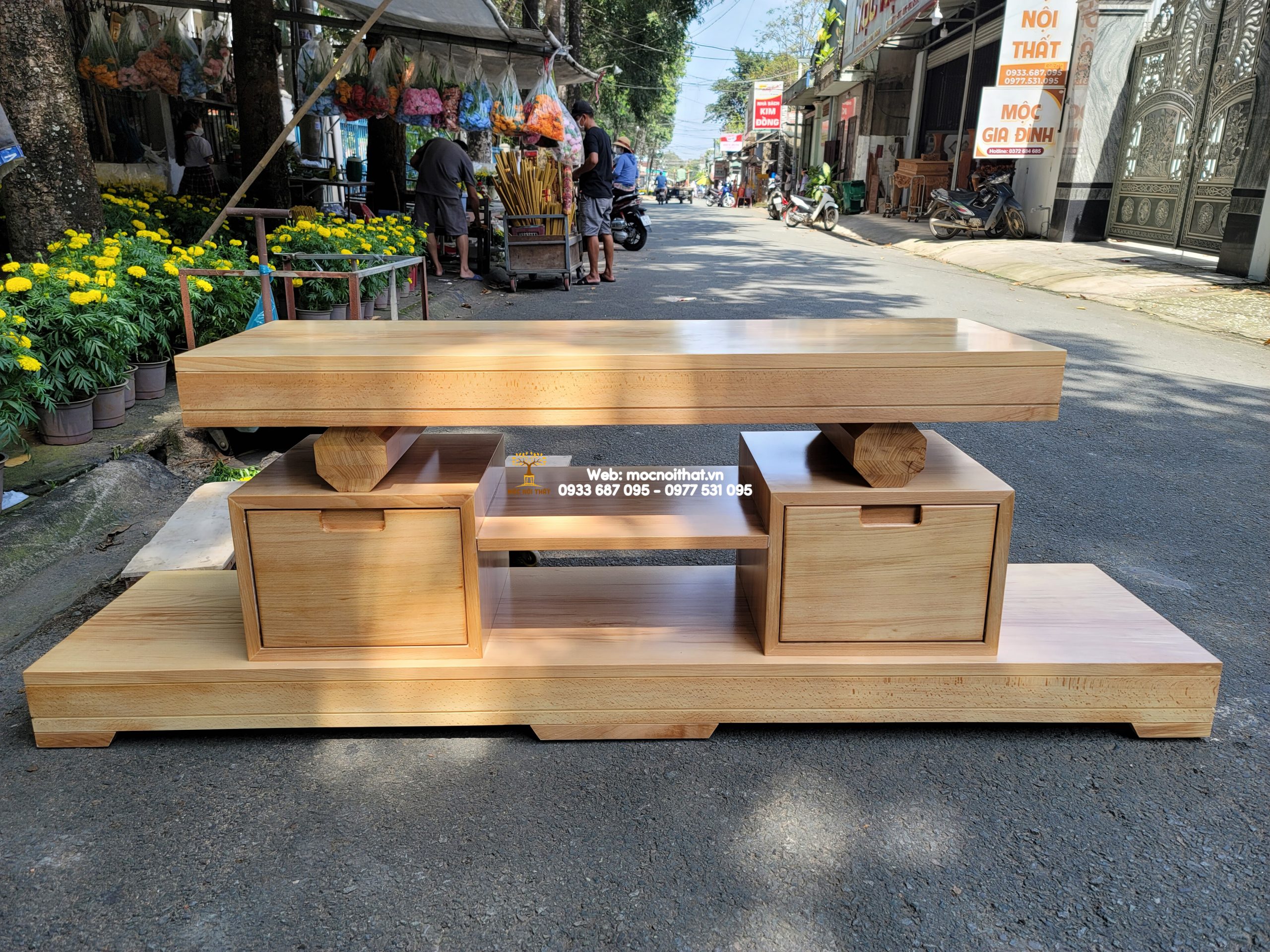 • Mô tả: Kệ tivi làm bằng Gỗ Sồi toàn bộ, có 2 hộc kéo để đồ, bề mặt dày 3cm,