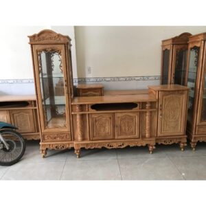 • Mô tả: Kệ tivi làm bằng Gỗ Gõ hoàn toàn, có tủ rượu lệch một bên (bên phải hoặc trái tùy lựa chọn). Điểm đặc biệt là tủ kết hợp thêm trang thờ ông Địa, Thần Tài tạo nét độc đáo và tiết kiệm không gian cho ngôi nhà của bạn