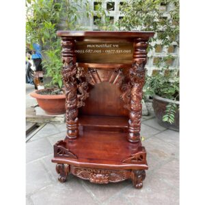• Mô tả: Trang Thờ Ông Địa được thiết kế cột rồng 16cm Chạm Rồng đạp mây , trang thờ được làm hoàn toàn bằng gõ đỏ 100%, mặt thờ và mặt đỉnh nguyên tấm dày 3cm