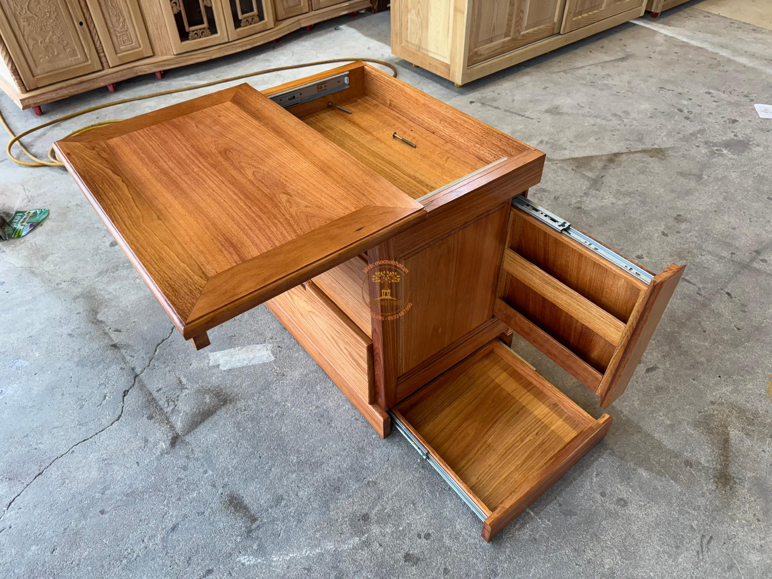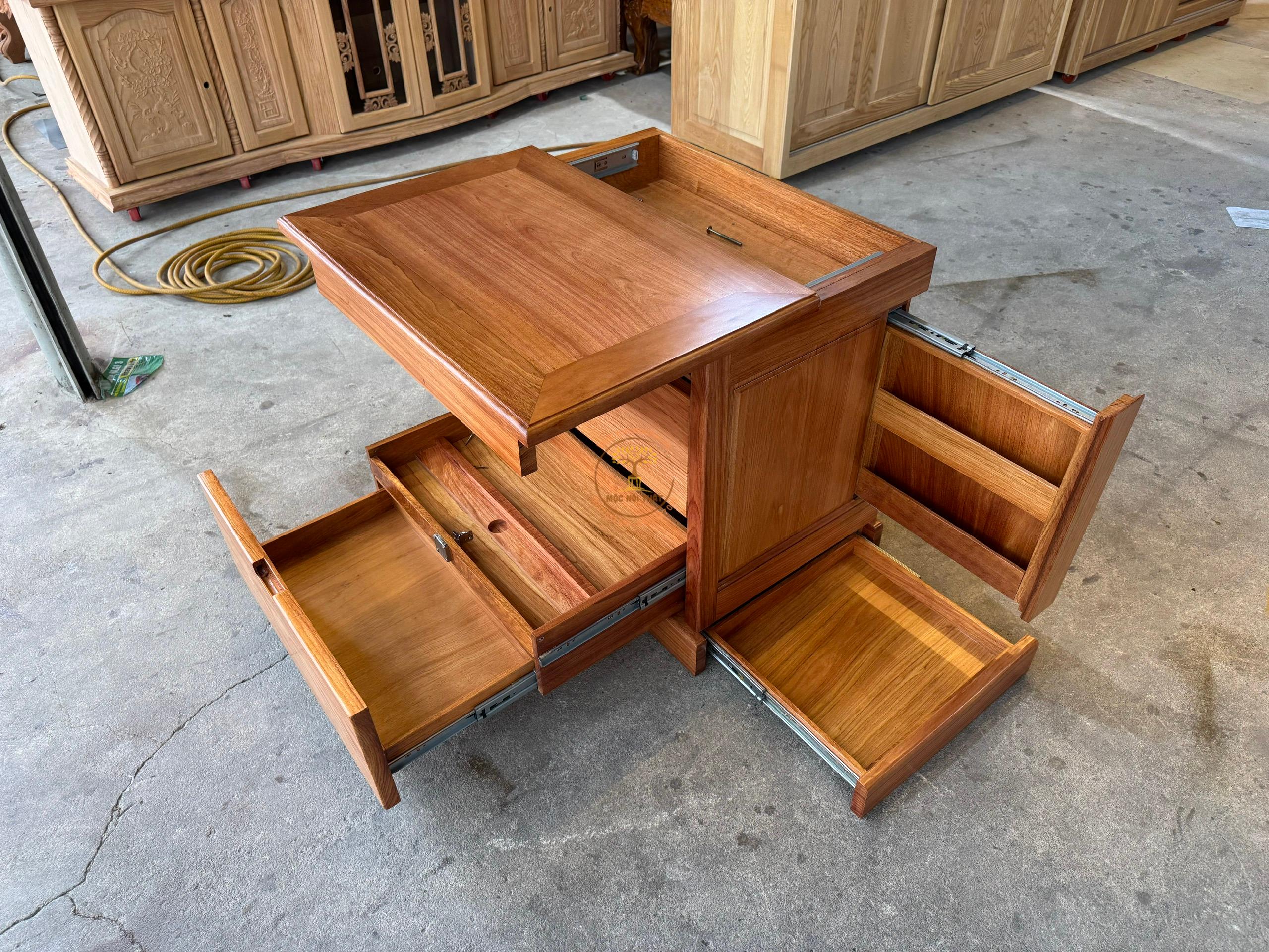 Tủ Đầu Giường Gõ Đỏ 4 Ngăn Ẩn