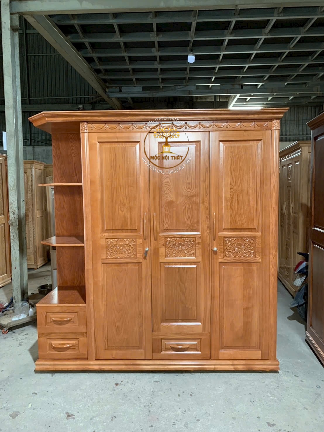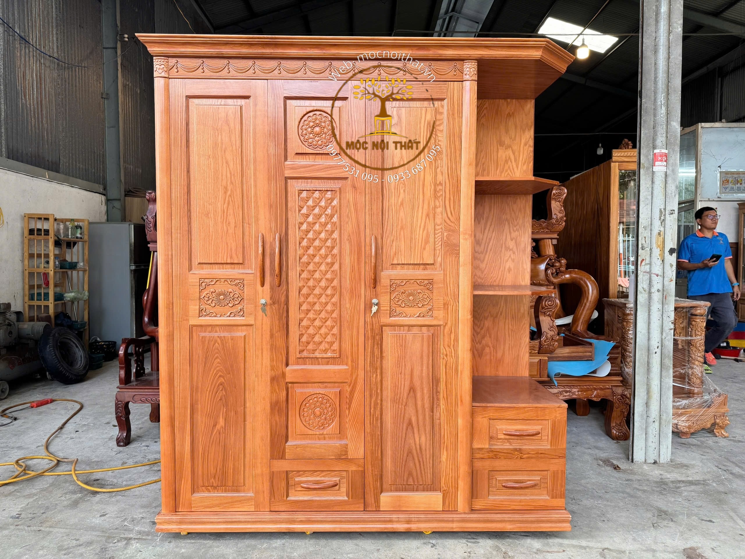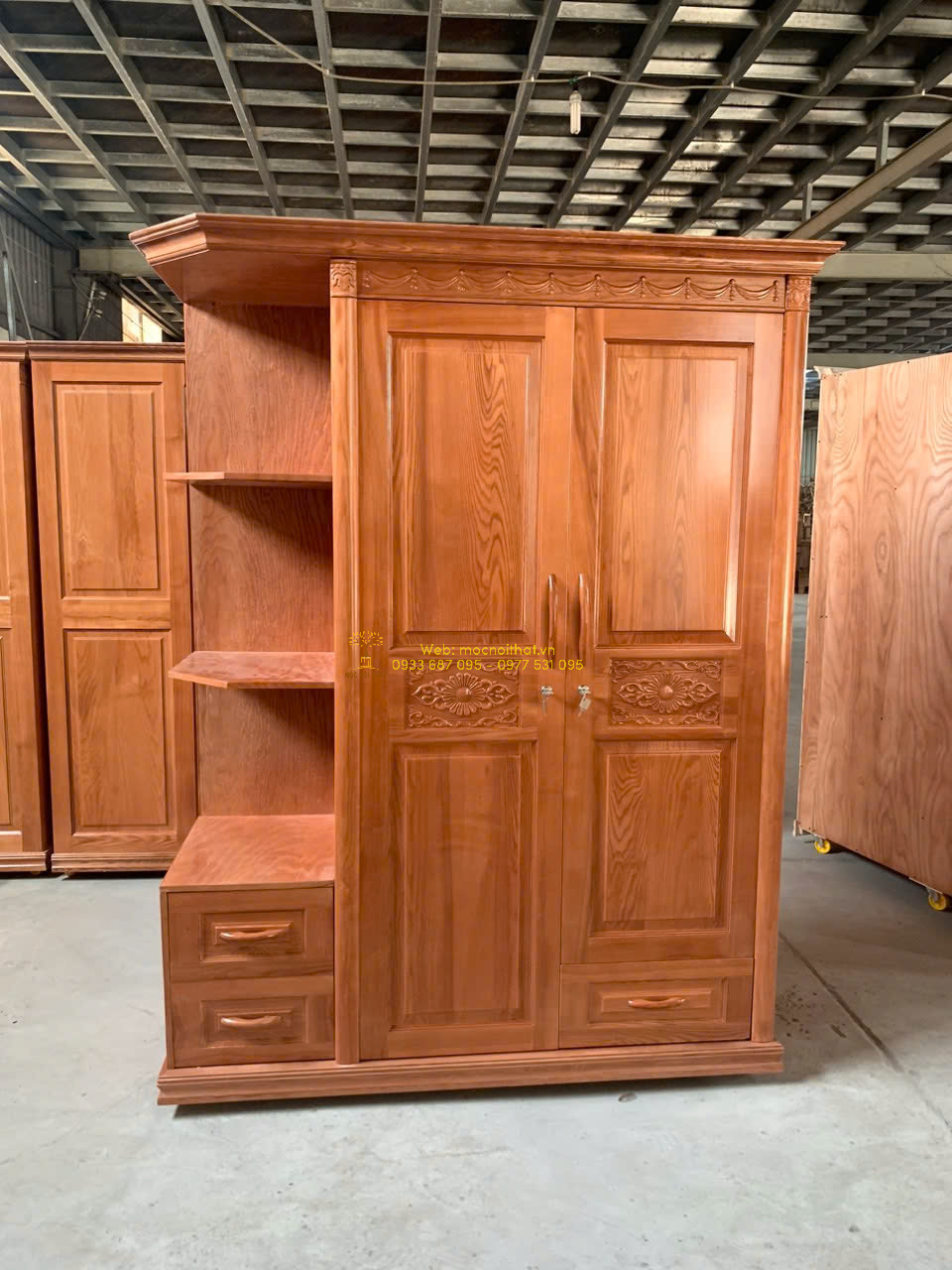 Tủ Áo Gỗ Sồi Kèm Kệ Trang Trí