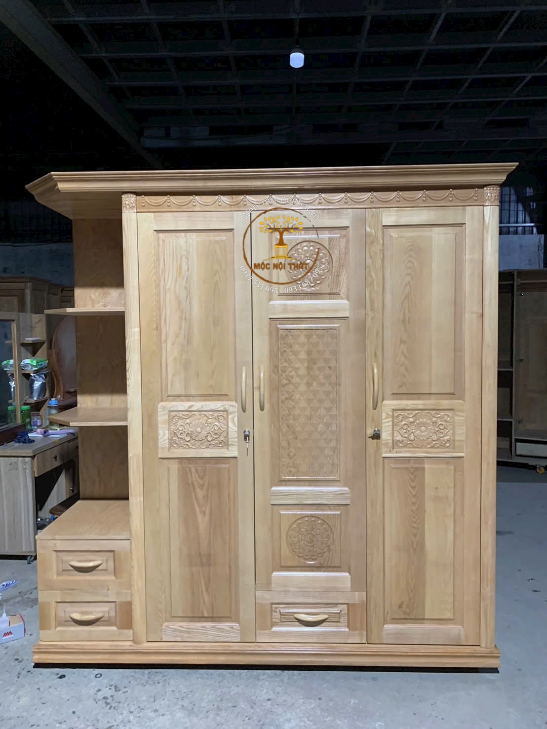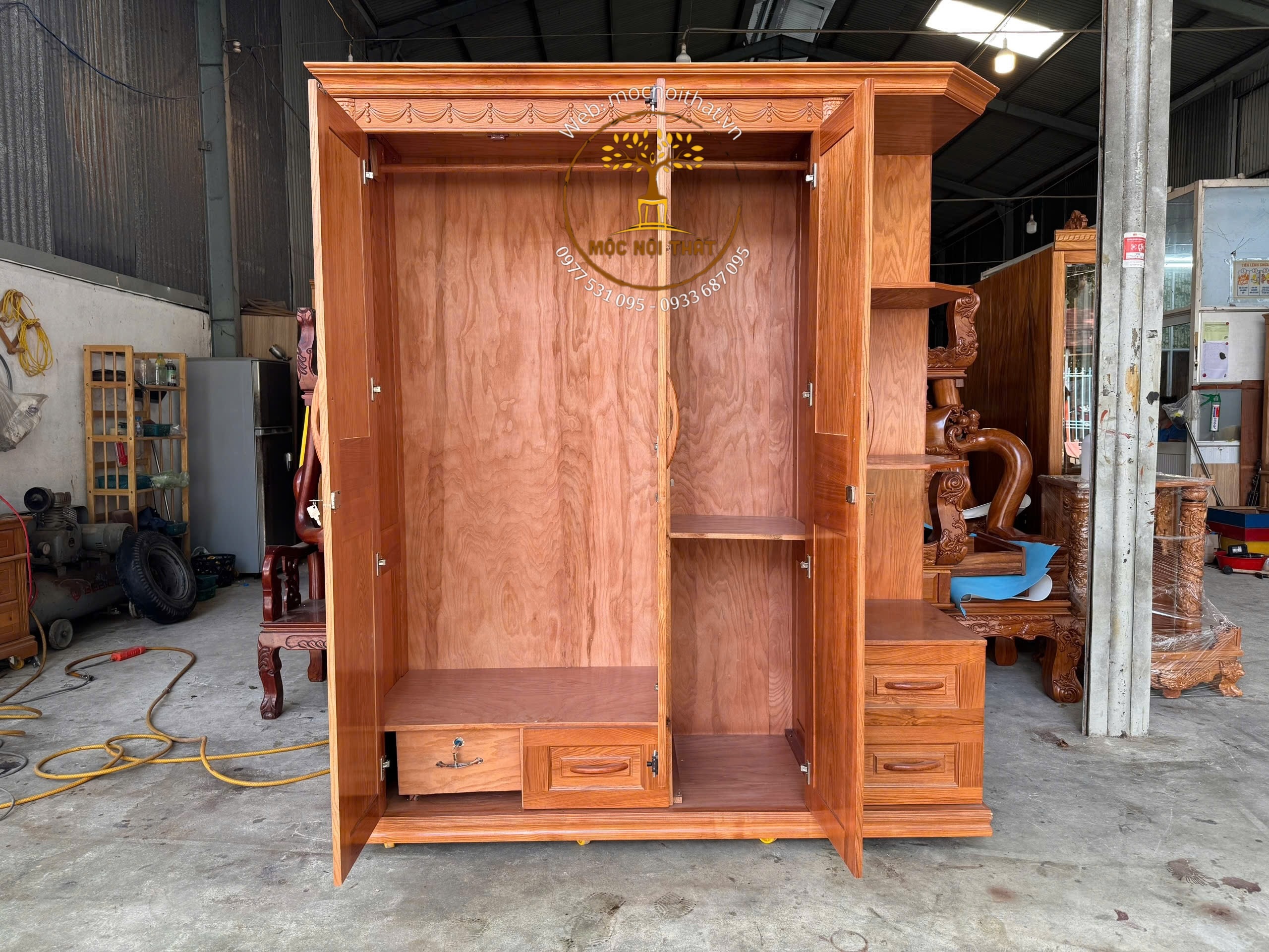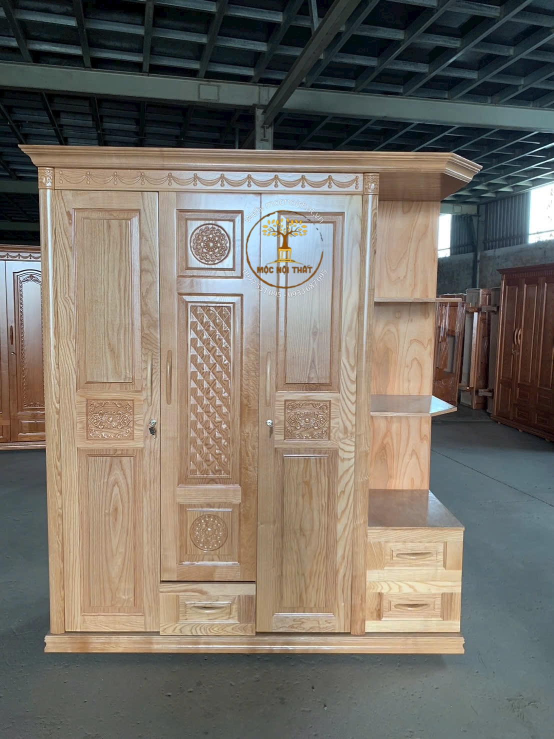 Tủ Áo Gỗ Sồi Kèm Kệ Trang Trí