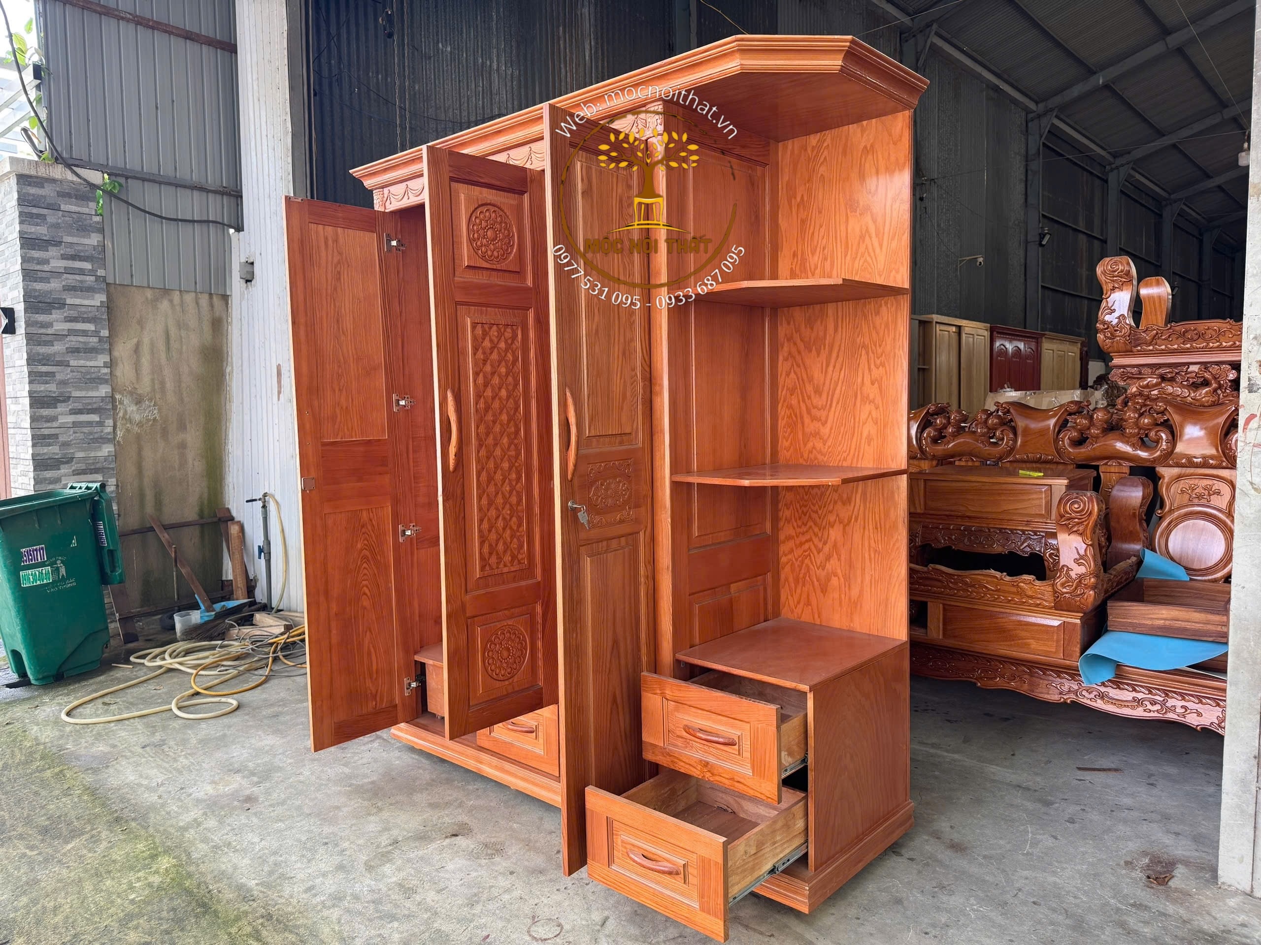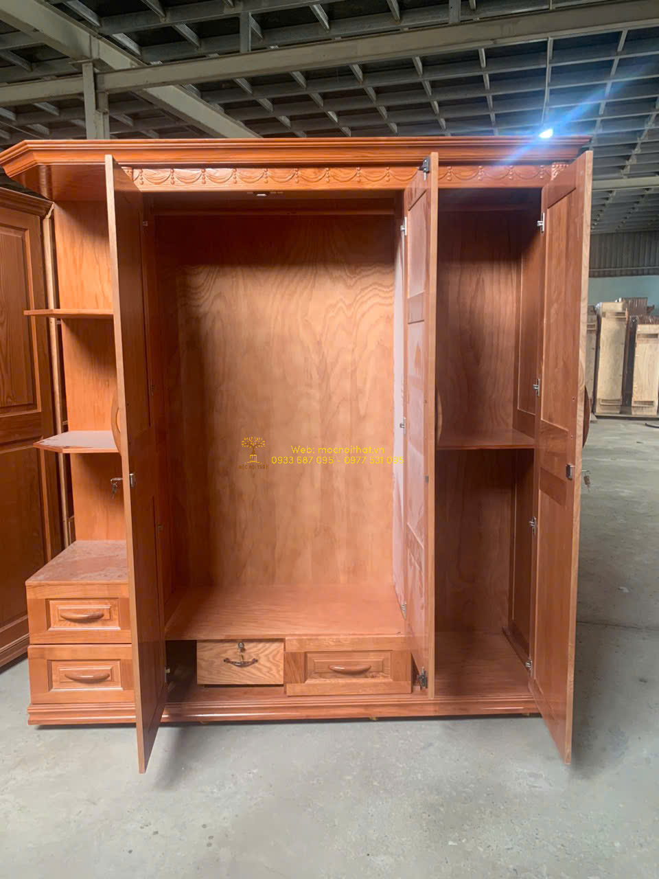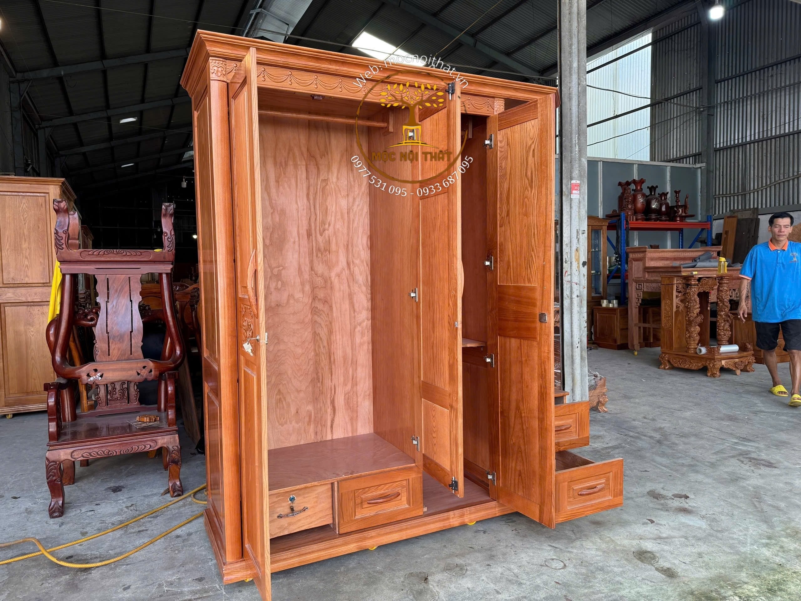 • Tủ Quần Áo Gõ Đỏ Kiểu Trơn Đơn Giản