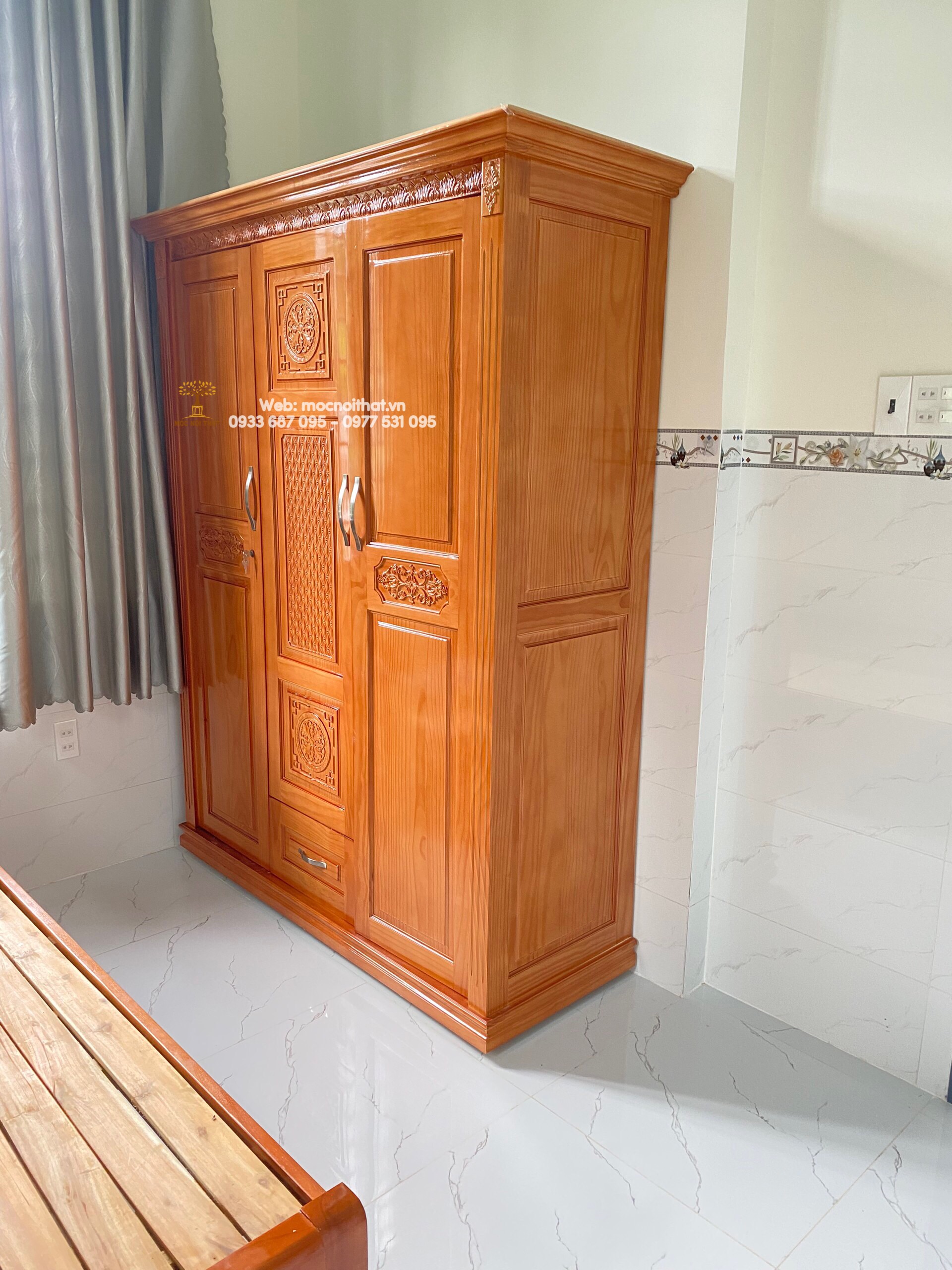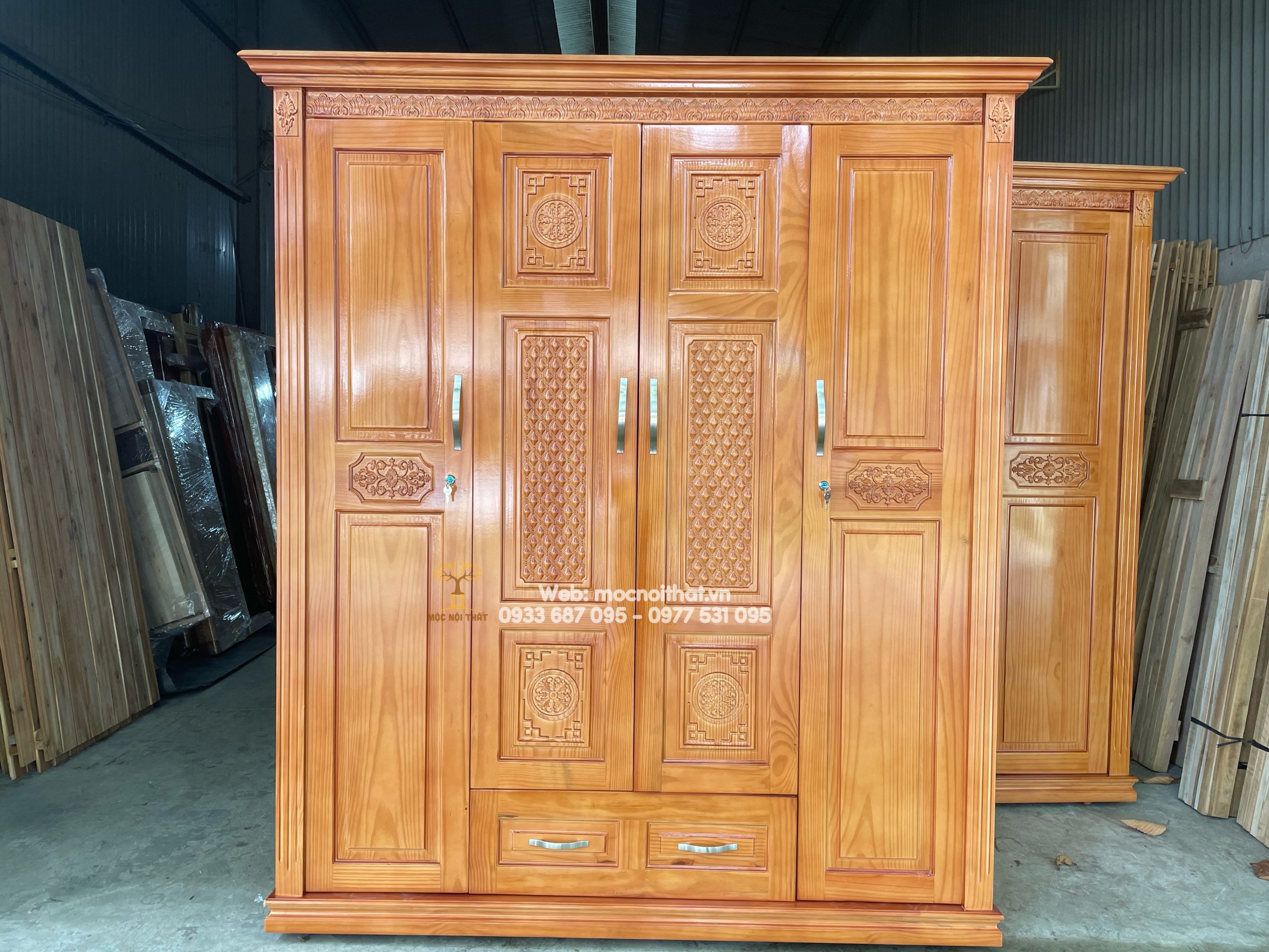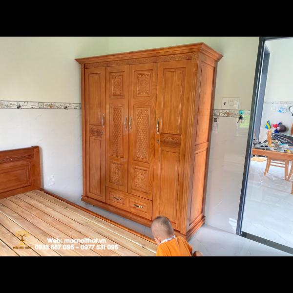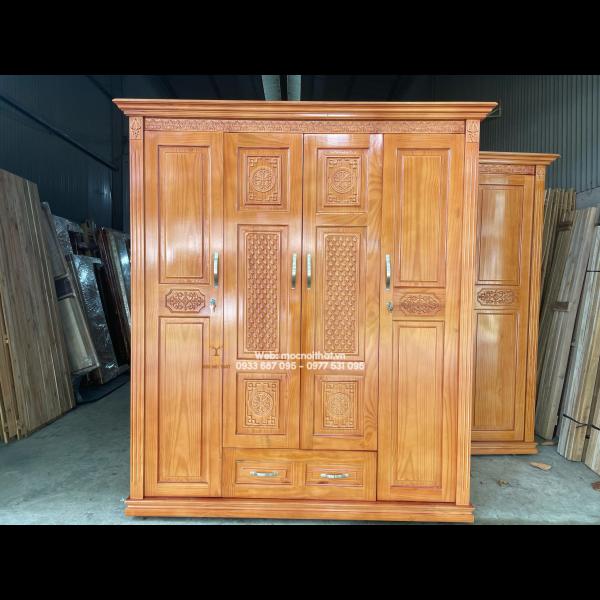 • Tủ Quần Áo Gỗ Xoan Kiểu Chạm Hoa