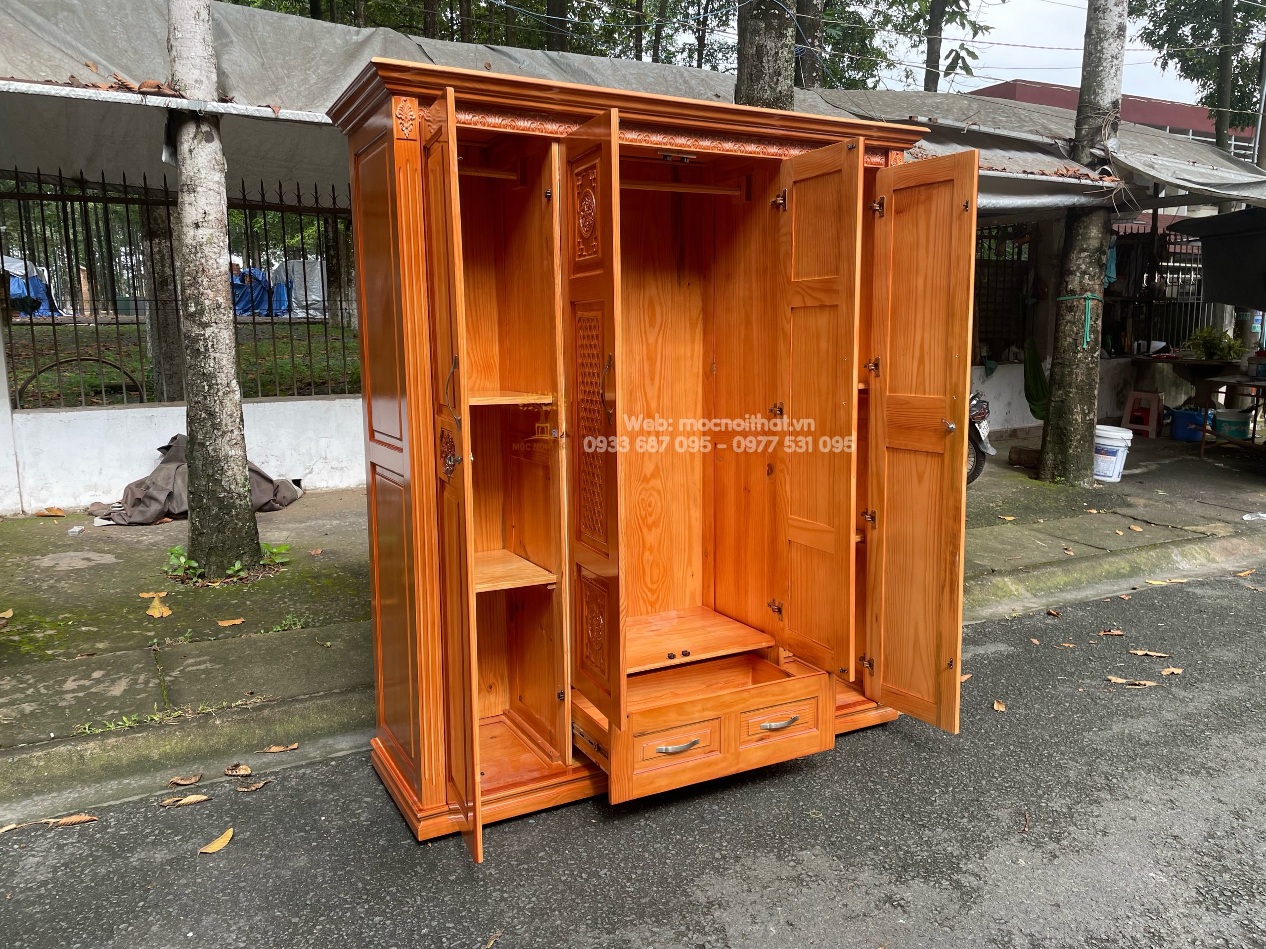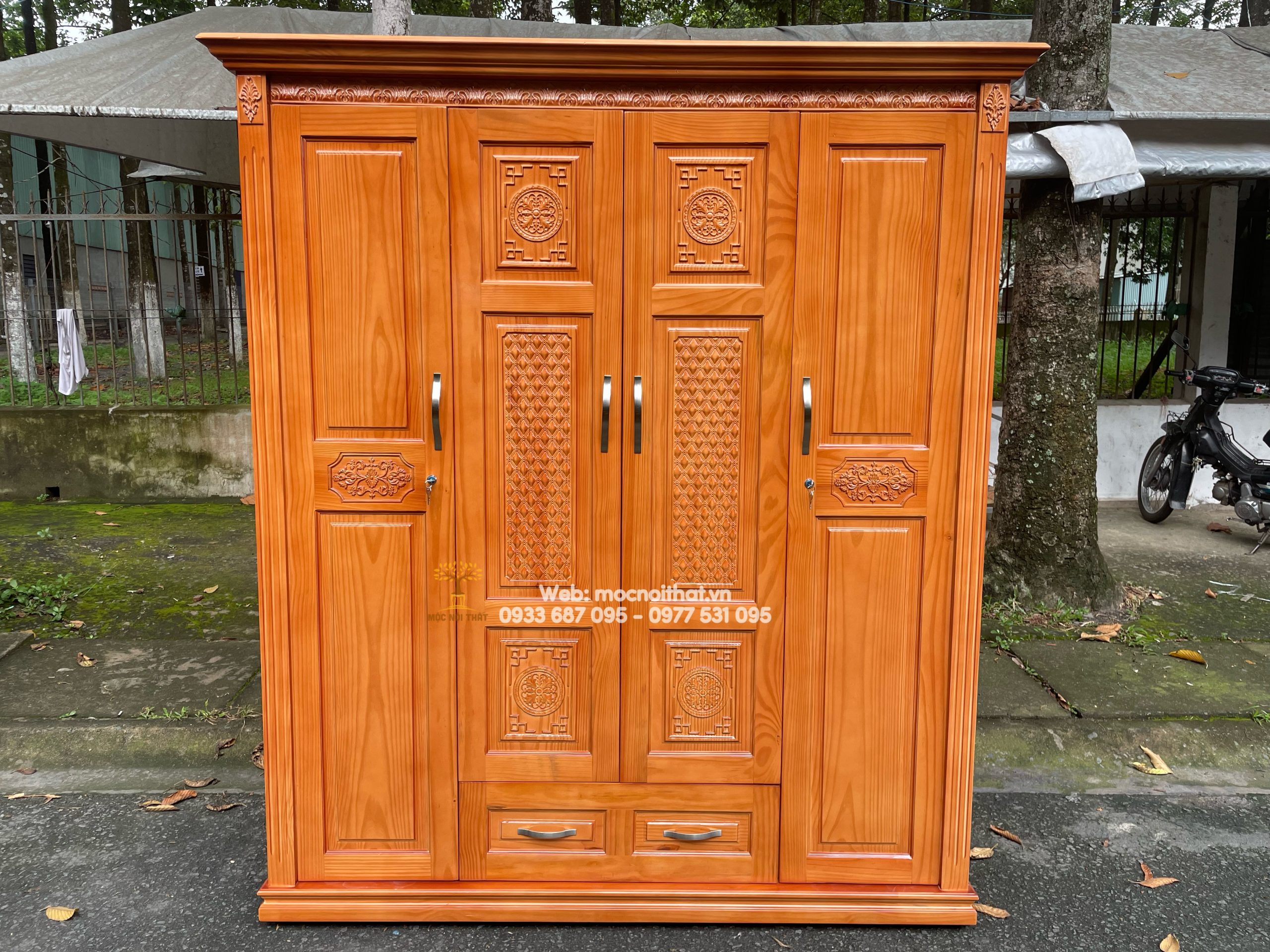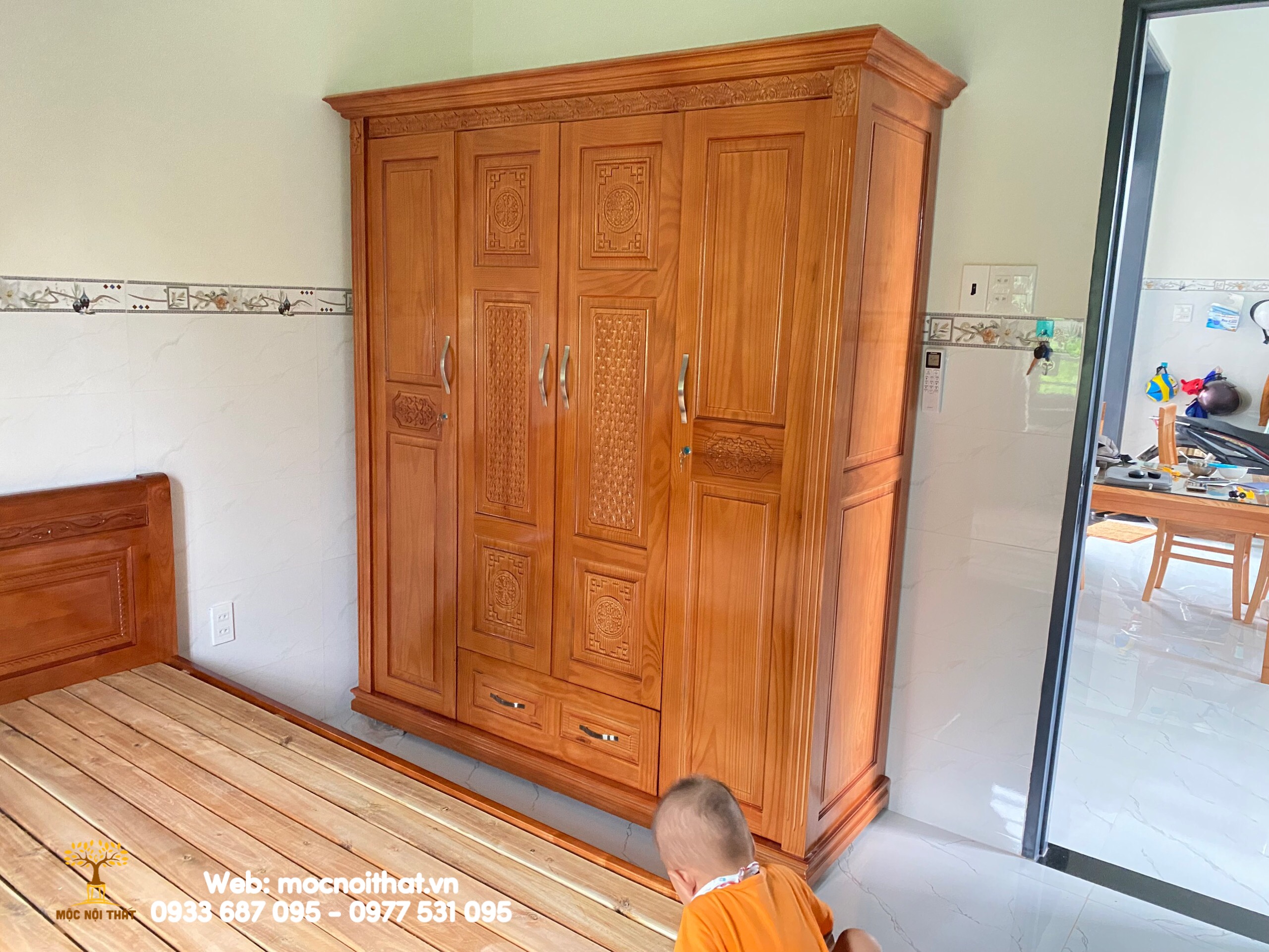 • Tủ Quần Áo Gỗ Xoan Kiểu Chạm Hoa