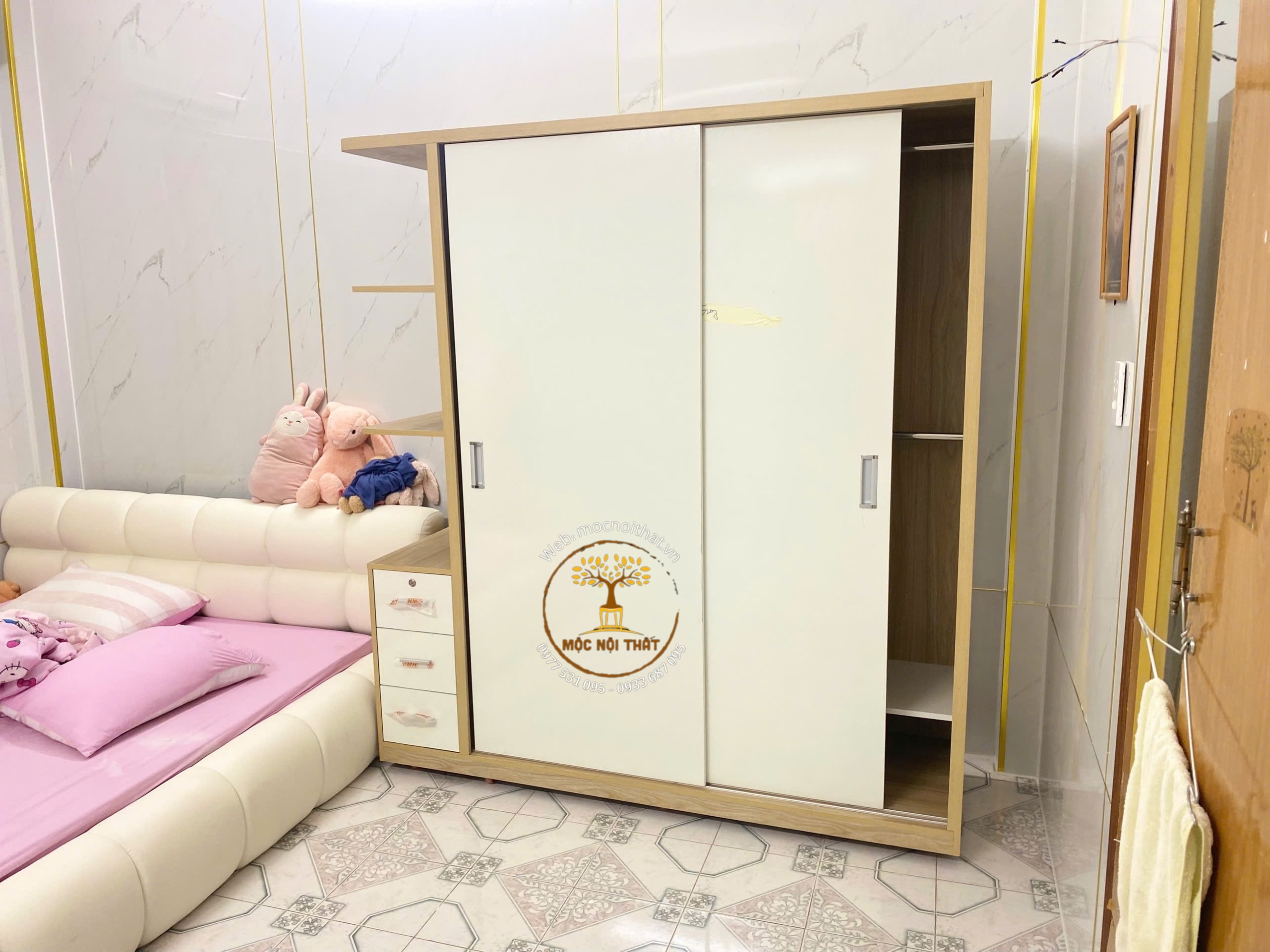 Tủ Quần Áo MDF Cửa Lùa Kệ Kéo Ngoài