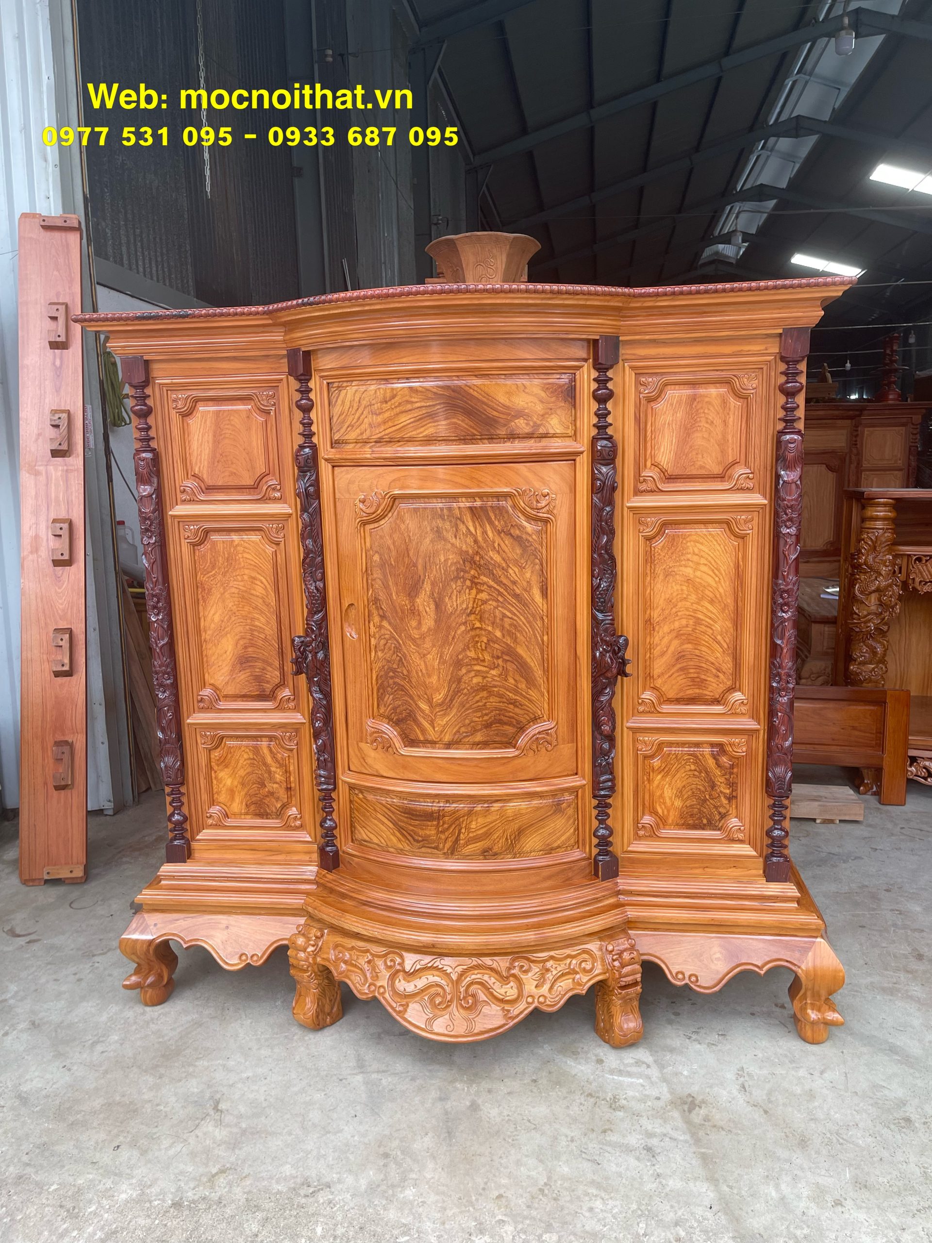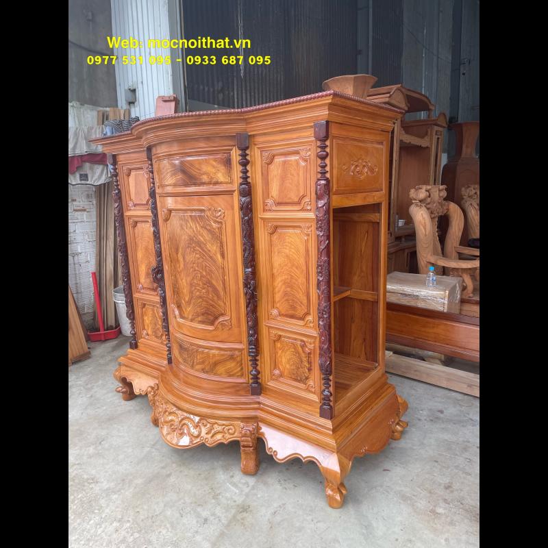 Tủ Thờ Gỗ Gõ Đỏ 9 Ô Chám Lào 4 Trụ Gỗ Cẩm Lai Việt – TTG-050L
